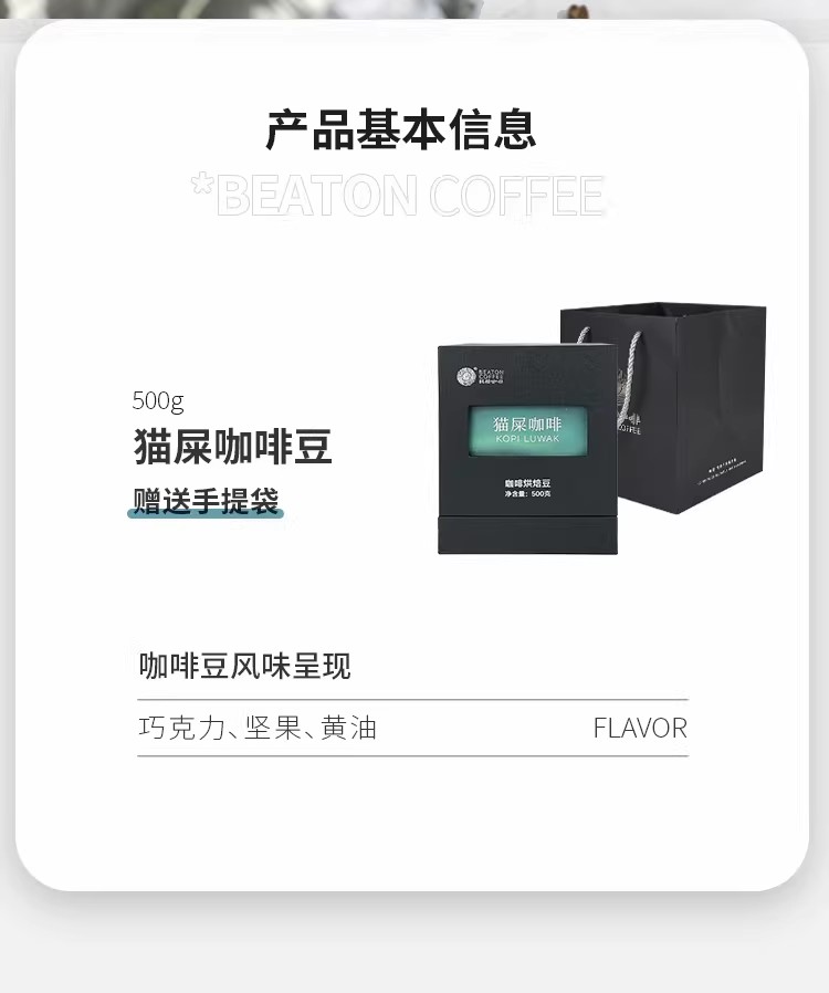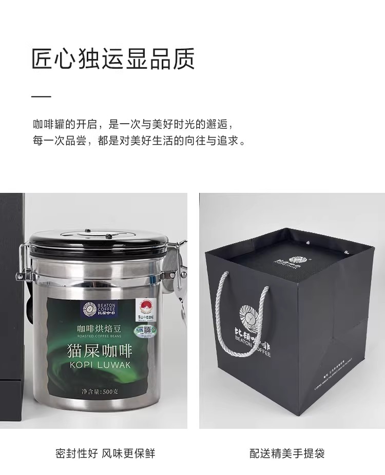 比顿咖啡 猫屎咖啡豆 手冲精品咖啡 现磨麝香猫咖啡500g/罐