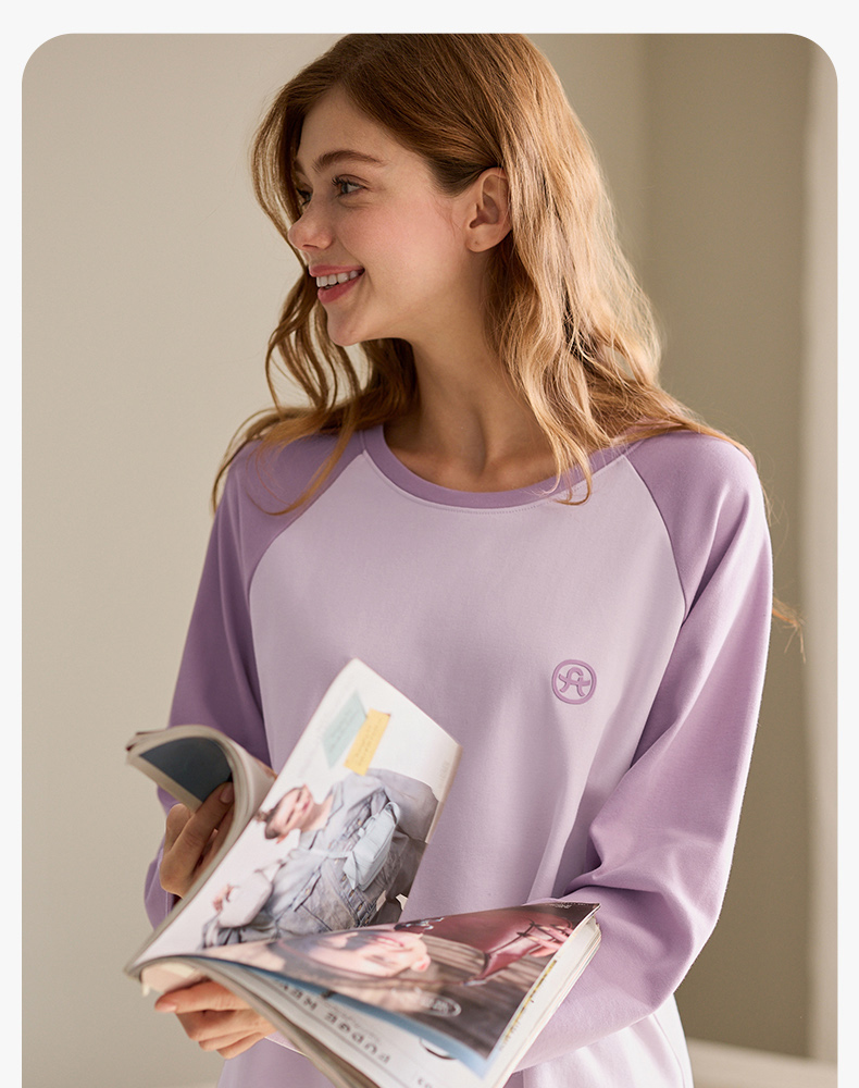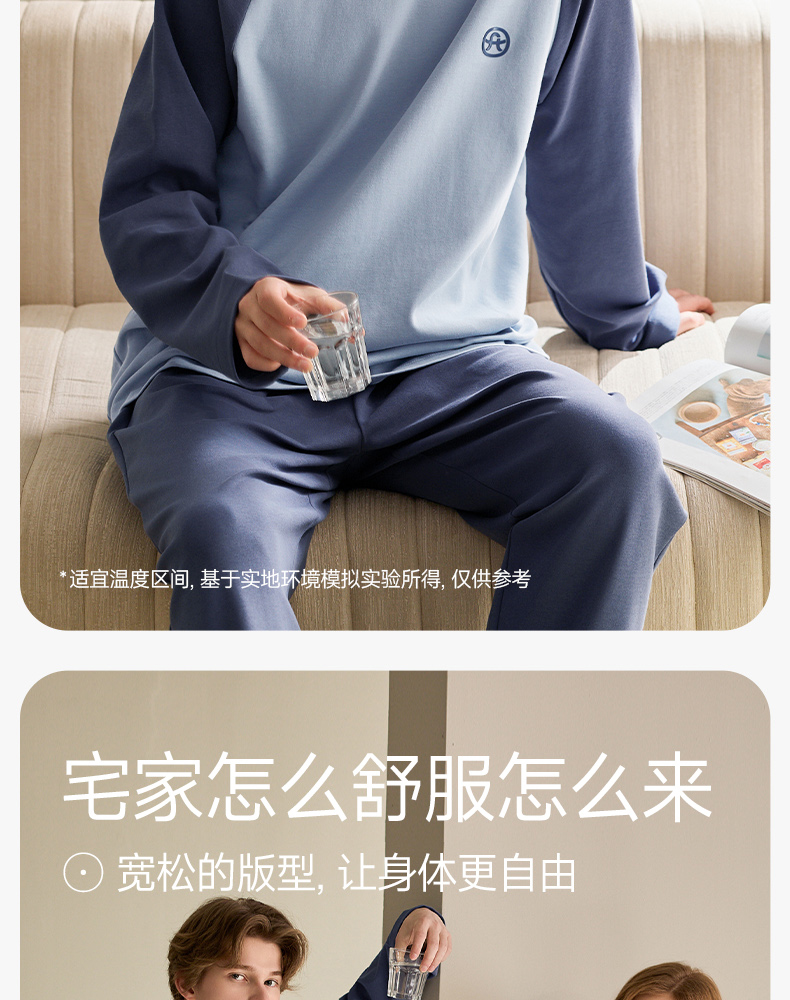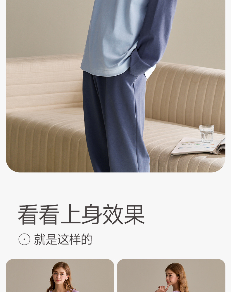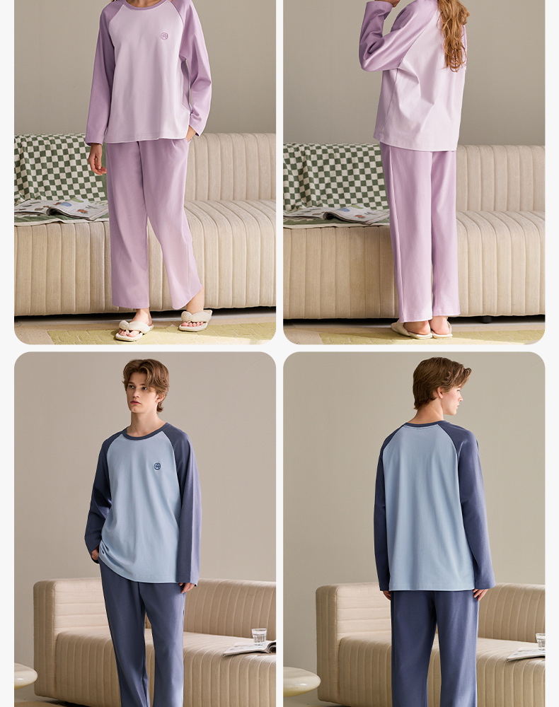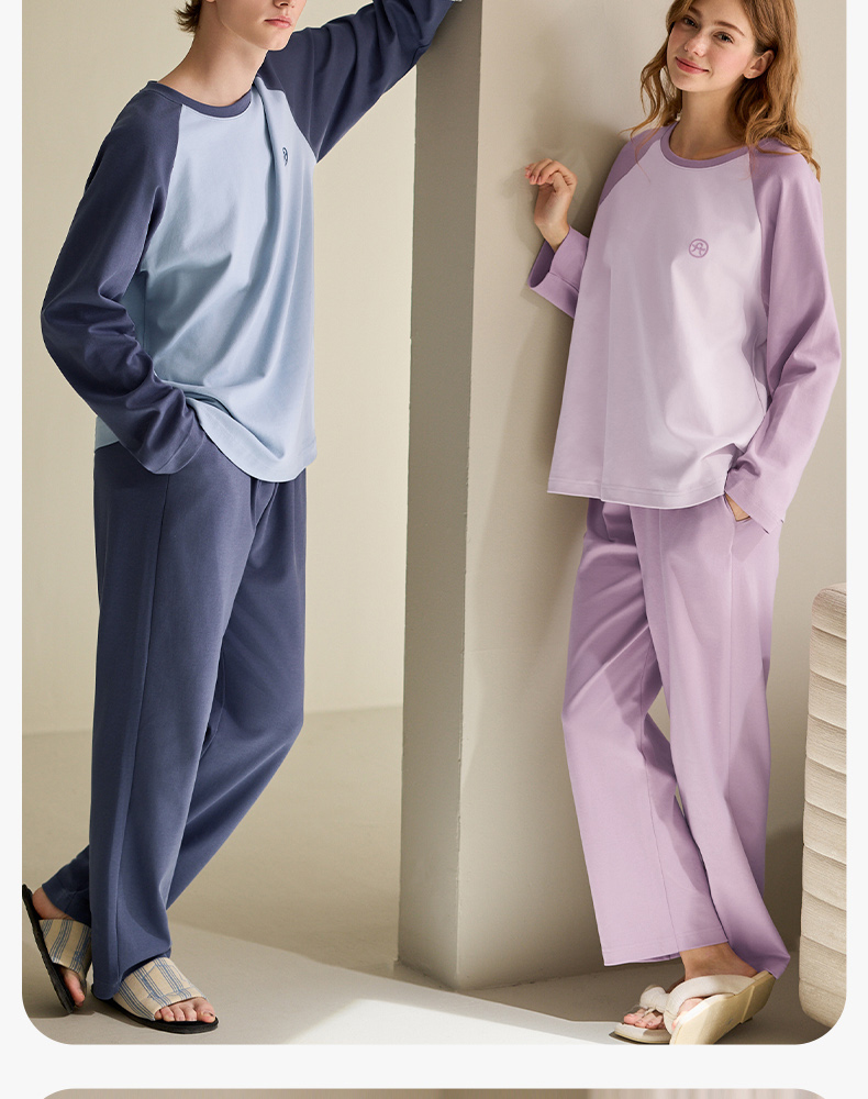 春秋季纯棉长袖套装宽松休闲加大码全棉家居服 A-5196 芬腾