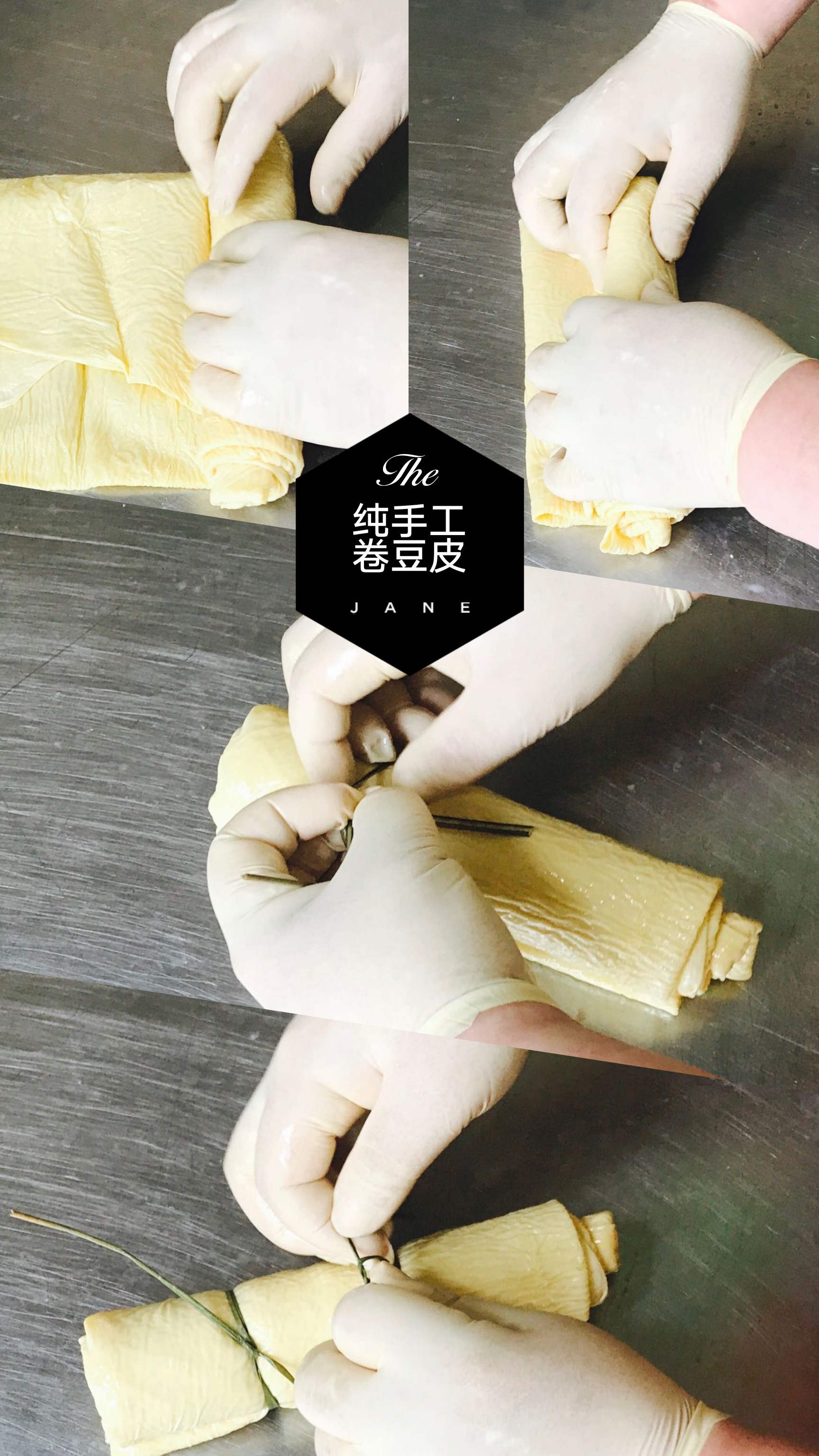 豆皮选用的是头层豆皮,我们只揭一锅豆浆凝结而成的一张豆皮,质量,口感,营养都是最好的,口感醇香,健康美味,更是家用、送礼首选。