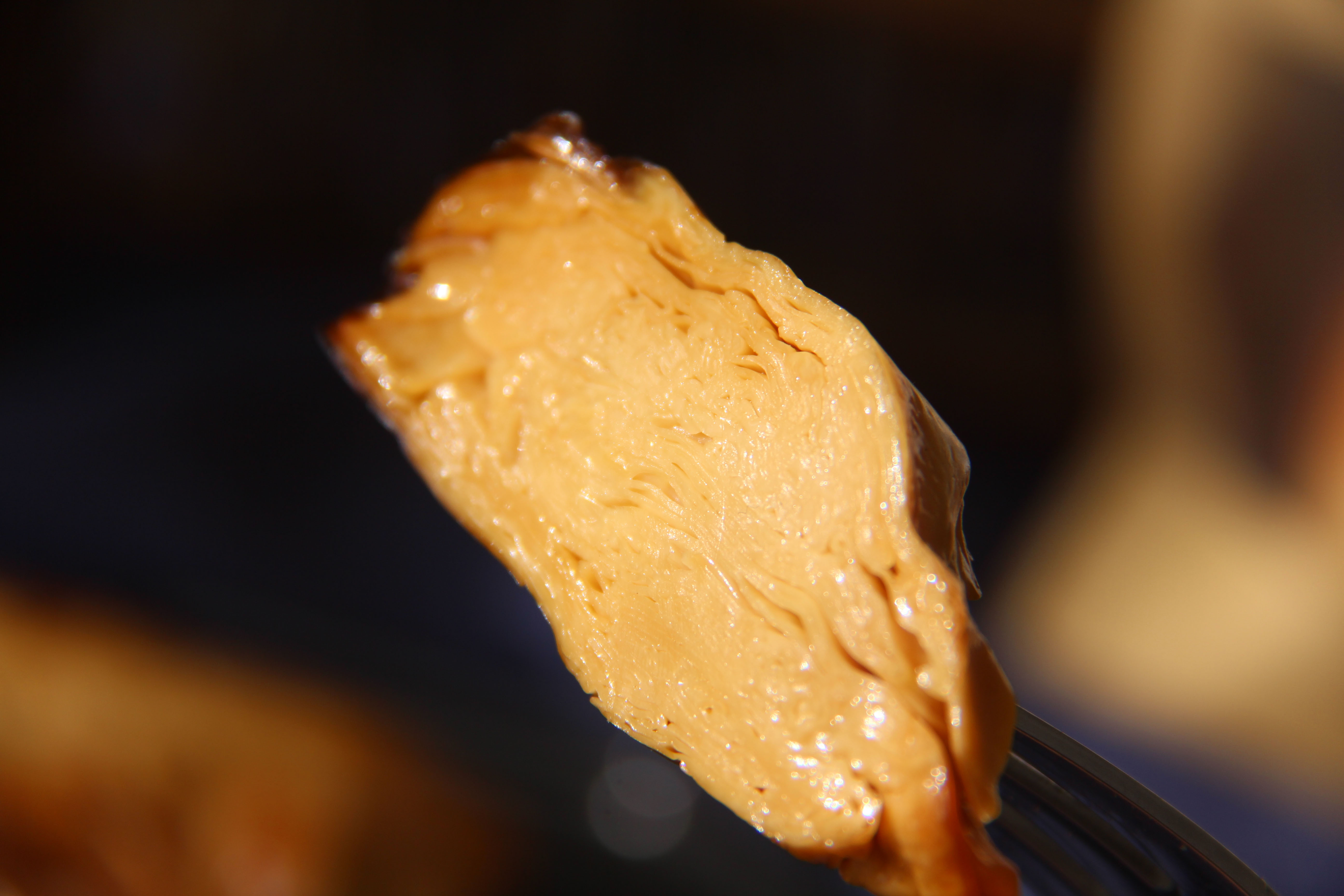 豆腐皮色泽金黄,色泽比其他豆腐皮更为浓郁油亮,质地厚实紧致,略有韧性,蒸浆时形成的脉络纹路立体清晰,闻着是浓浓的豆香,令人胃口大开,餐桌上的一盘好菜。