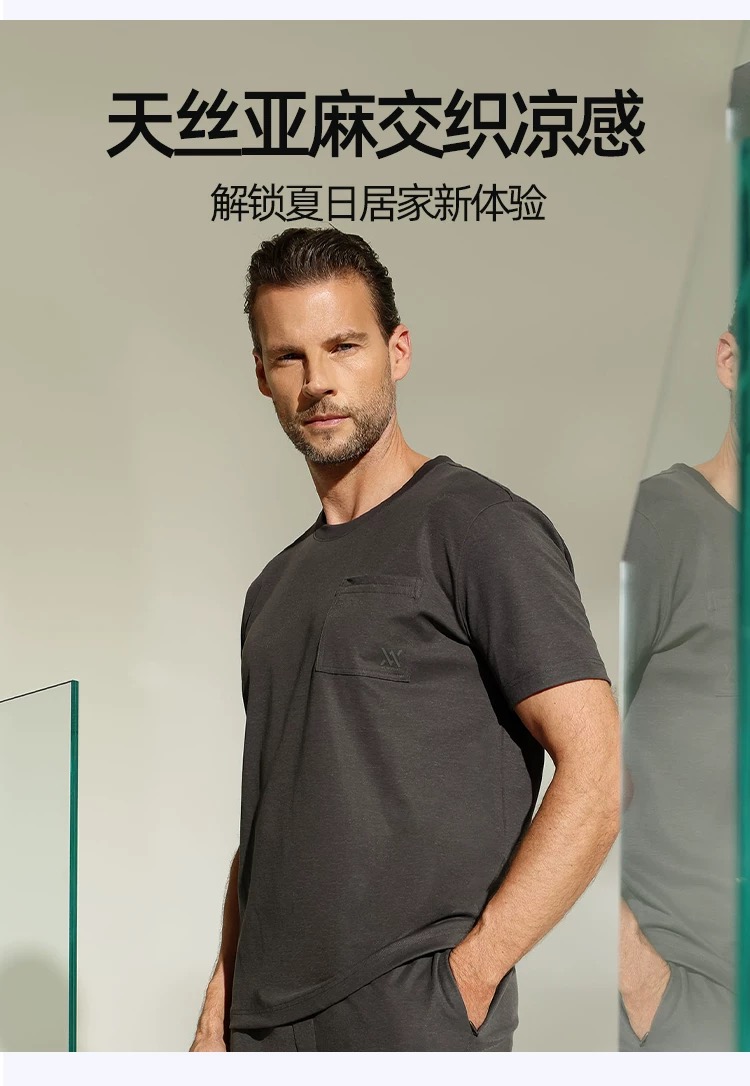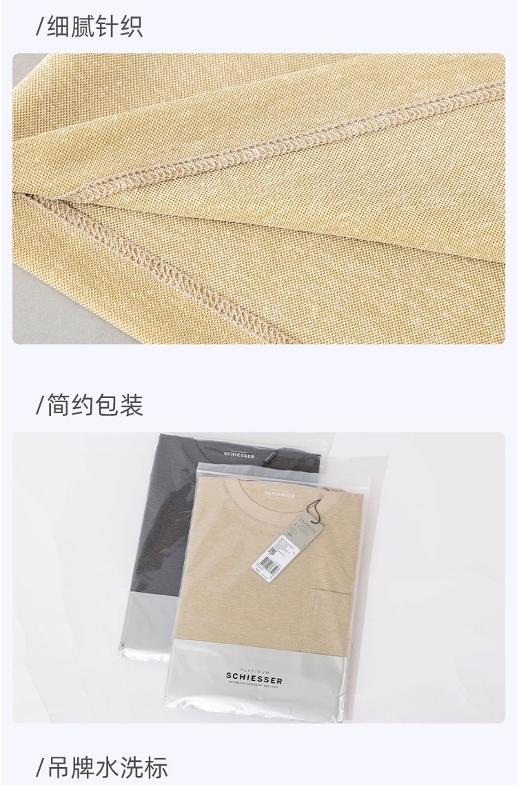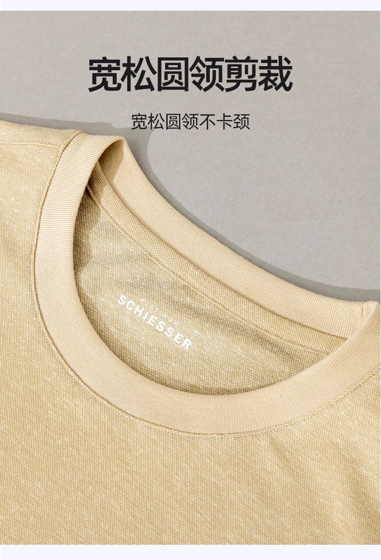 【天丝亚麻外穿】SCHIESSER德国舒雅高端铂雅男士圆领短袖上衣天丝 ,亚麻,锦纶,氨纶混纺 180克 99/27125U