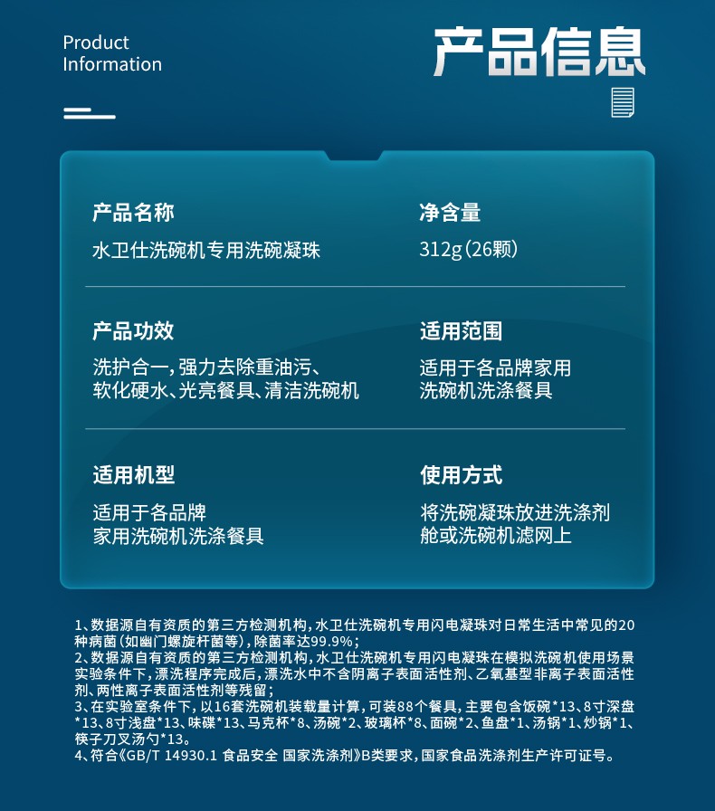 水卫仕洗碗机专用洗碗凝珠12克(闪电珠)*26颗/袋