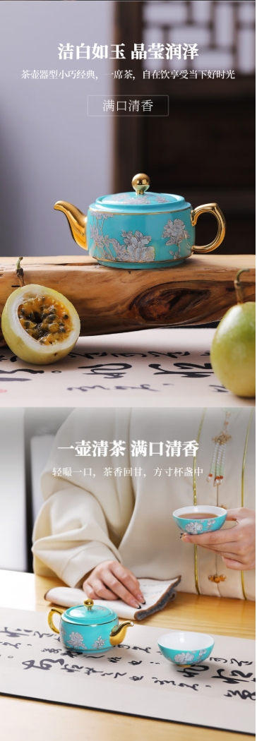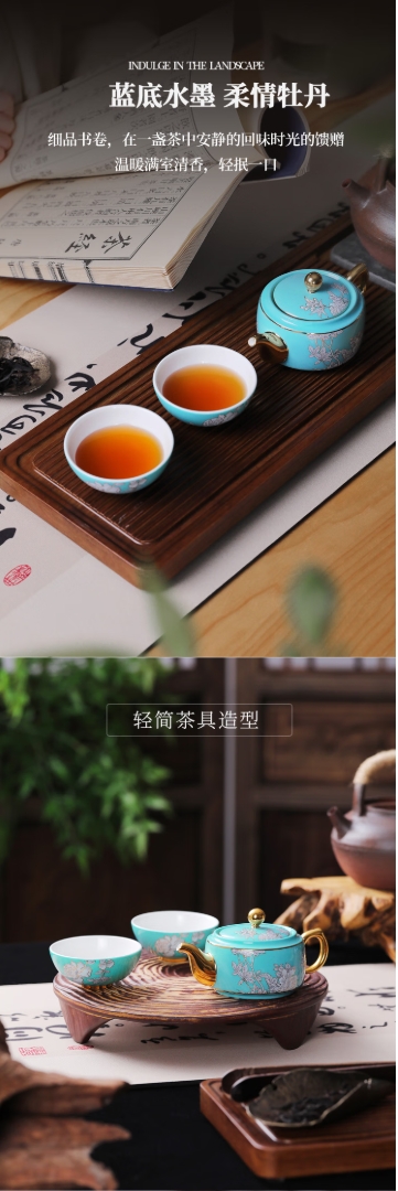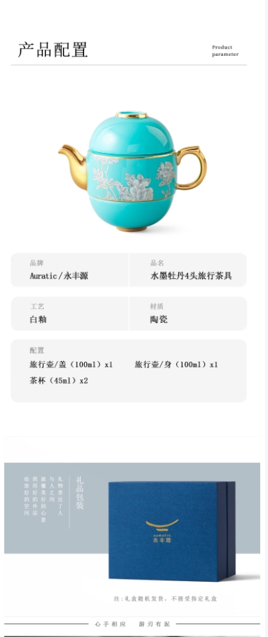auratic永丰源 水墨牡丹4头旅行茶具套装(1壶2杯)
