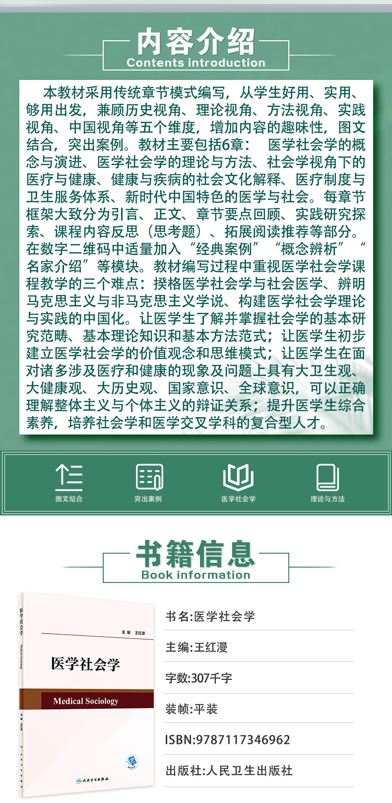 医学社会学 王红漫主编 医学社会学中国化含义 健康中国战略落地践行 社会学经典理论基本方法范式 人民卫生出版社9787117346962