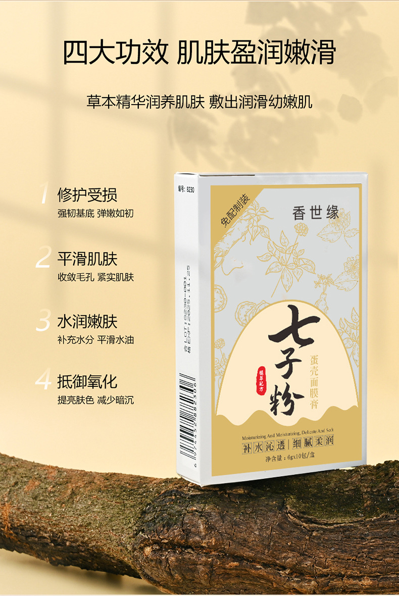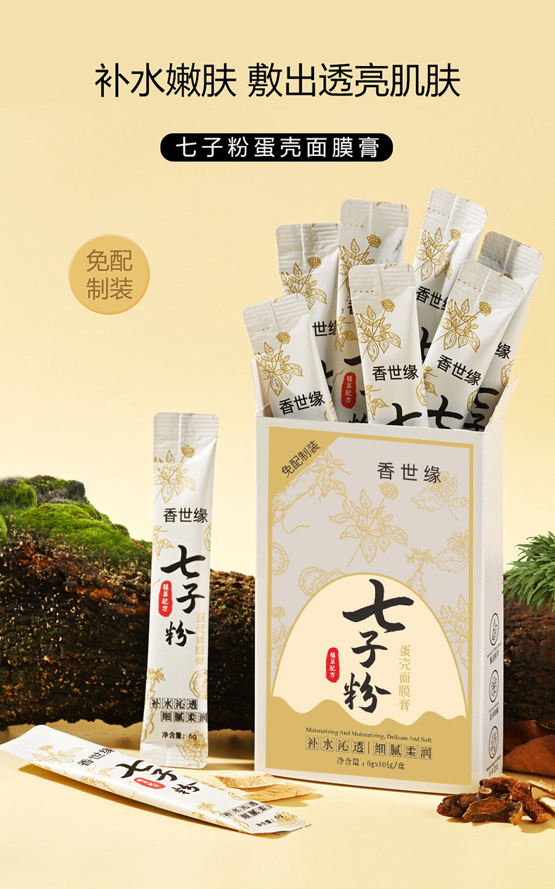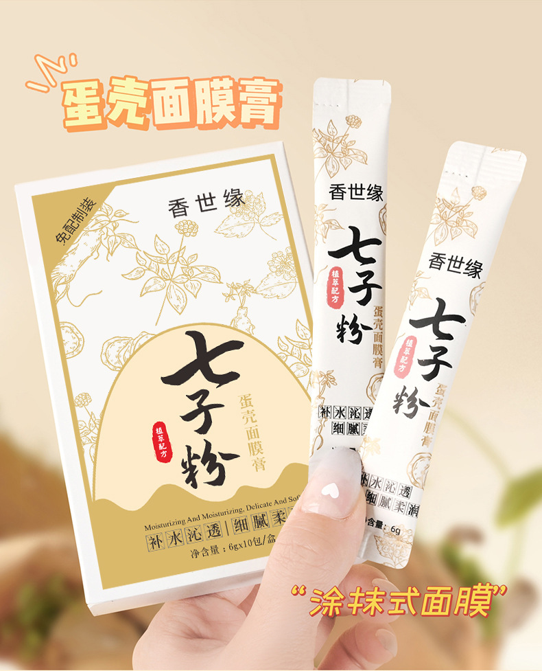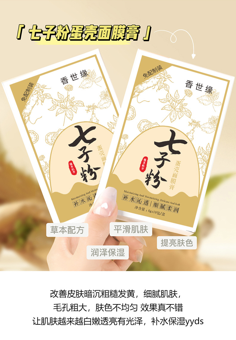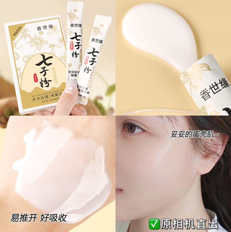 【补水嫩肤!敷出透亮肌肤】免调配,直接涂抹,香世缘七子粉面膜膏补水保湿紧致改善粗糙便携装涂抹蛋壳面膜。rc