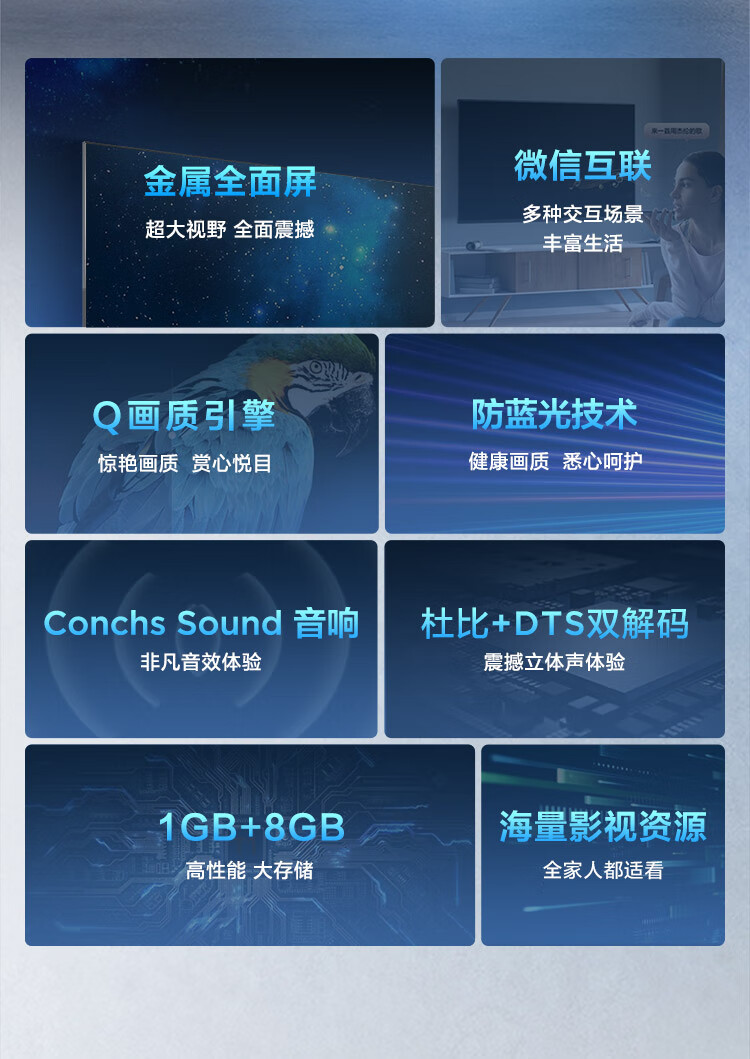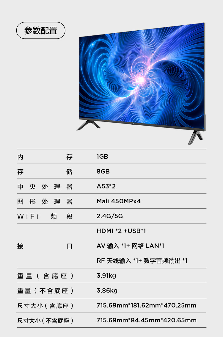 TCL电视 32英寸 全高清 护眼防蓝光 无边全面屏 液晶网络智能平板电视机32V6EA