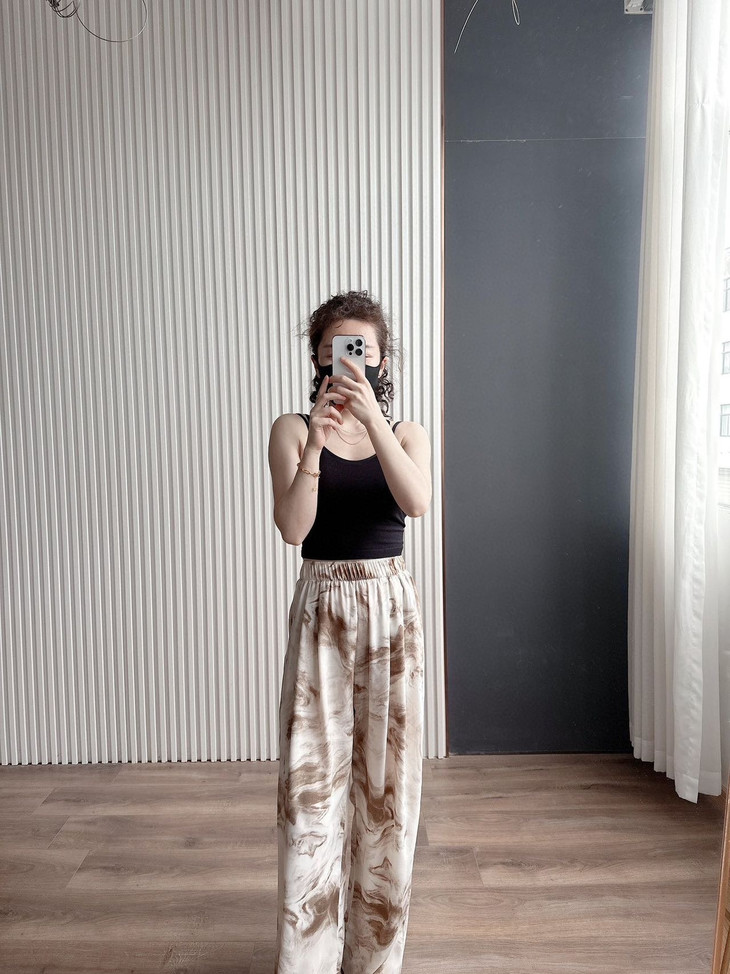 3、超大的阔腿裤设计,加上自带垂感面料,显瘦显高很有质感