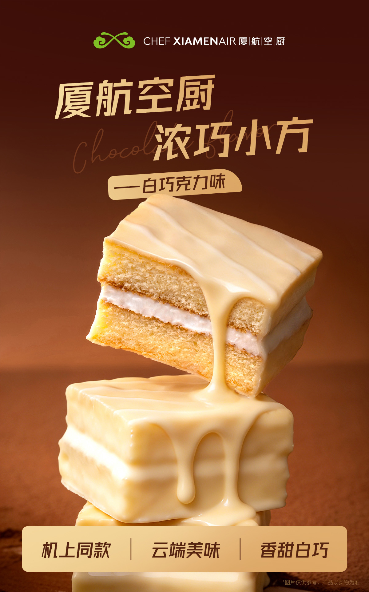 厦航空厨机上同款浓巧小方浓郁白巧绵密蛋糕胚丝滑奶油注芯下午茶