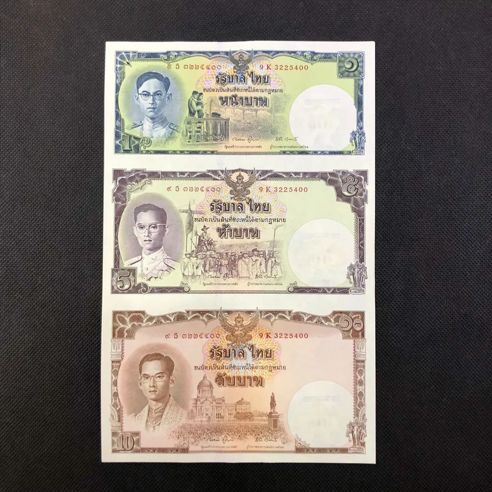 泰国银行于2007年11月28日发行了一枚全新设计的《泰国三连体纪念钞》,用于纪念泰国国王普密蓬诞辰80周年。