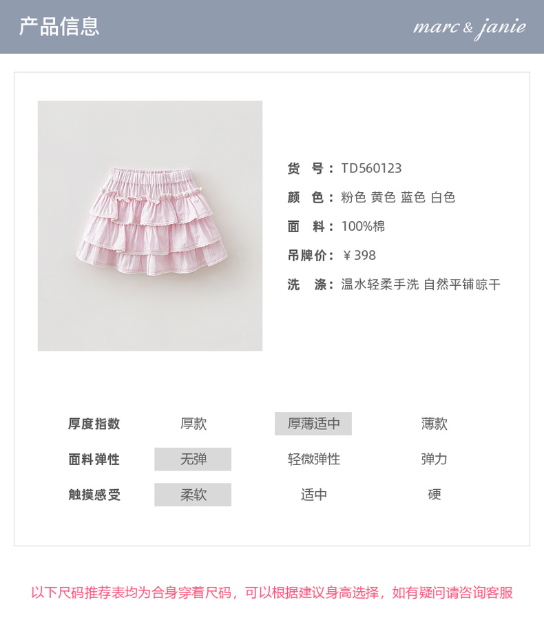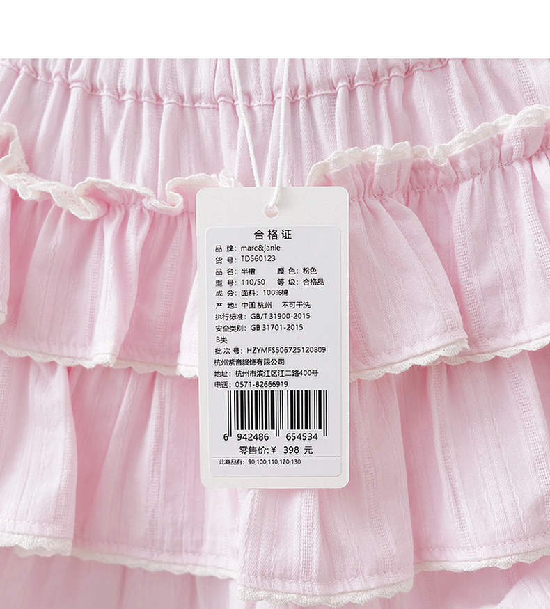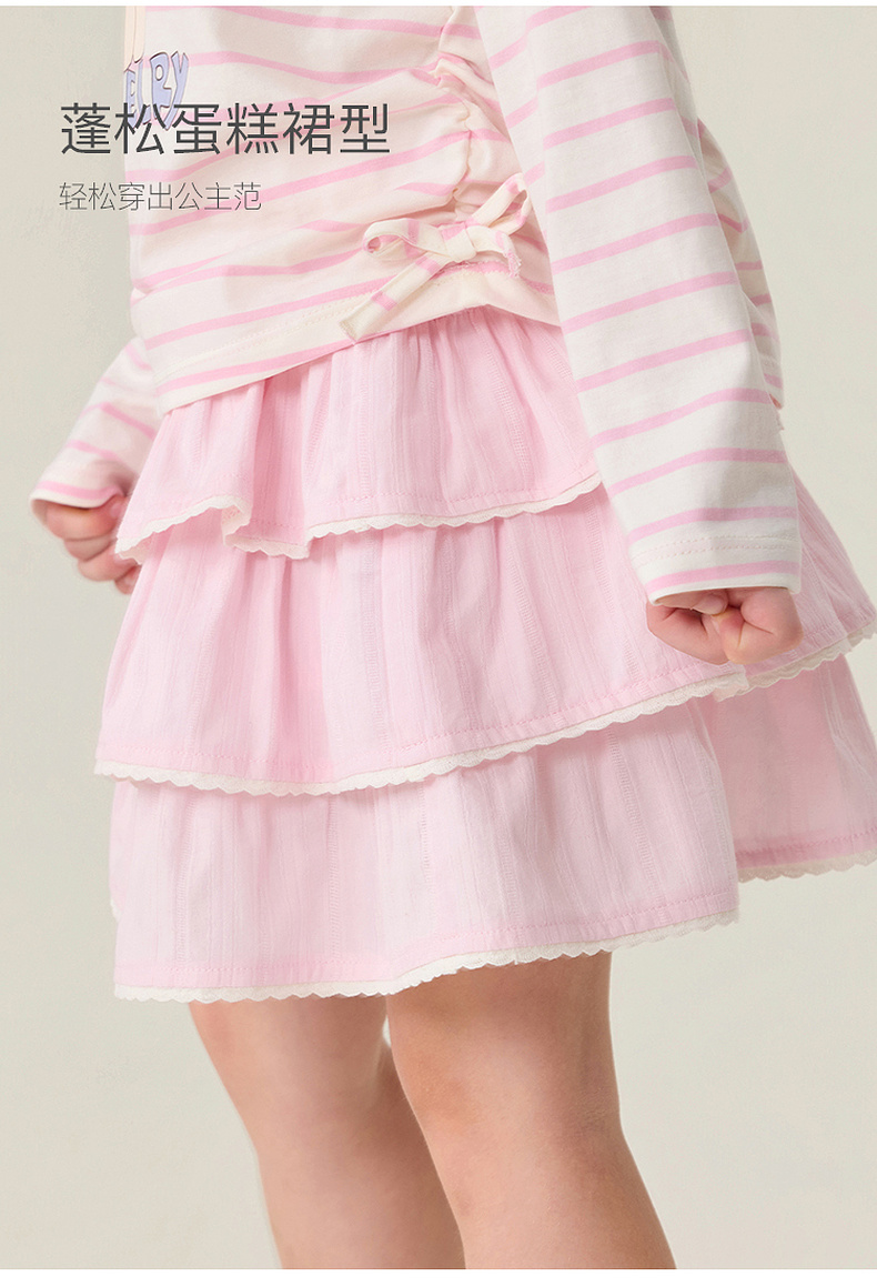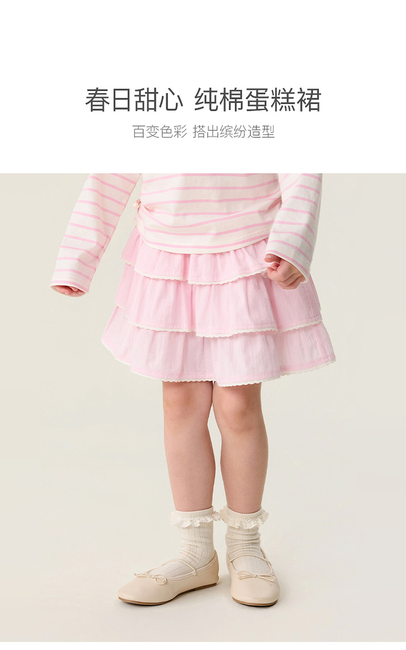 马克珍妮春日甜心女童花边蛋糕裙2026年春装新款560123