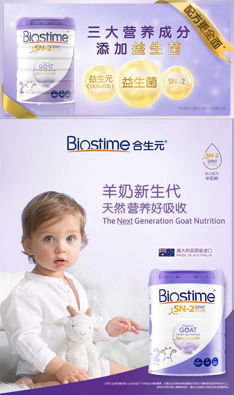 HNMG 澳大利亚合生元BIOSTIME婴幼儿羊奶粉2段 800G/罐