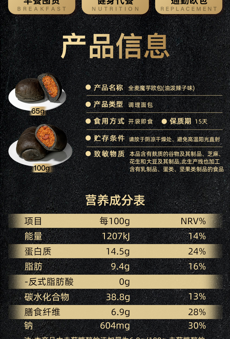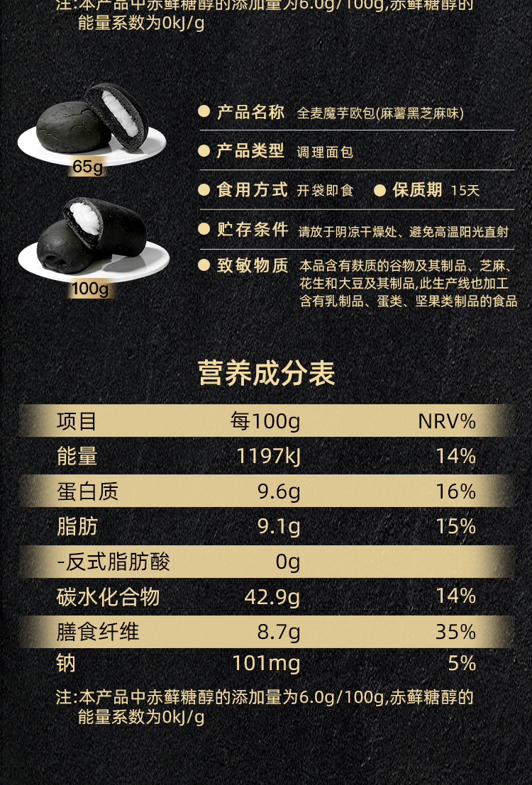 哥本上新❤哥本™全麦魔芋五黑欧包【油泼辣子&麻薯芝麻味】(不可用券)