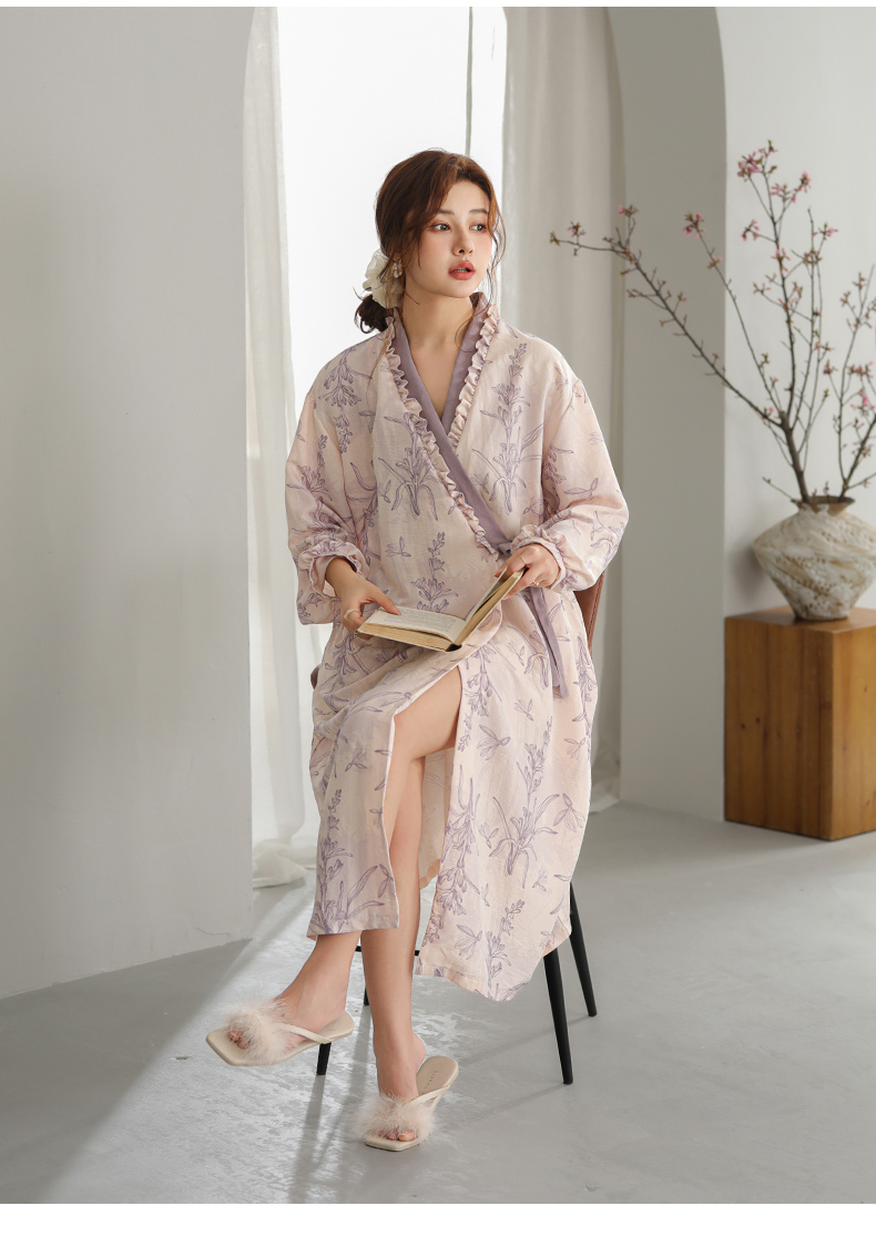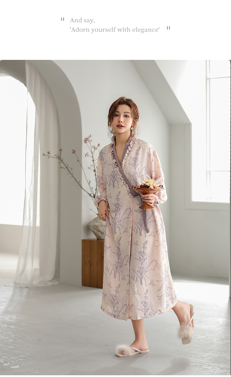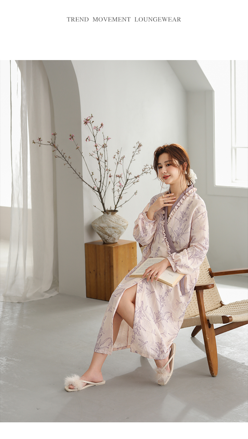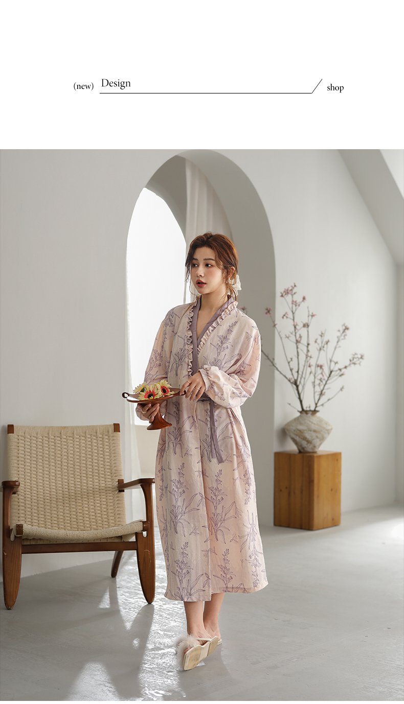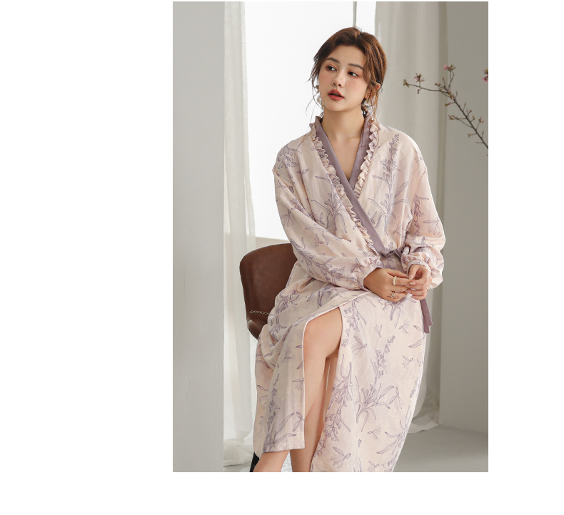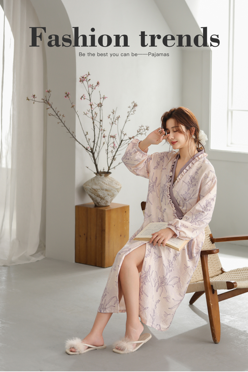 可人儿小众设计师新款奥力绵女士睡衣春秋长袖时尚可外出家居服