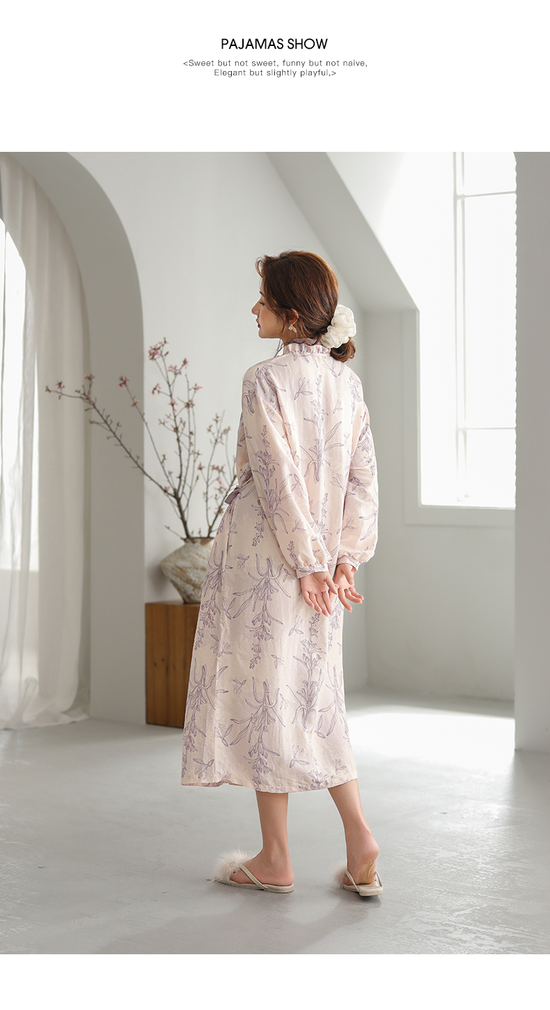 可人儿小众设计新款泡泡绵女士睡裙春秋长袖少女睡衣可外穿连衣裙