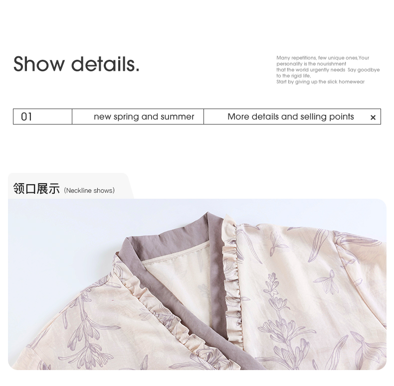 可人儿新款纯棉睡衣女士春秋季长袖时尚开衫开衫可外出家居服套装