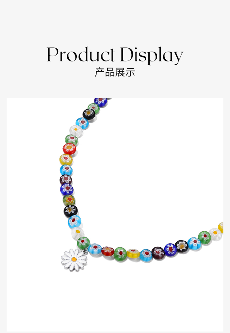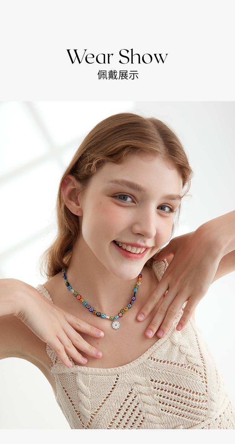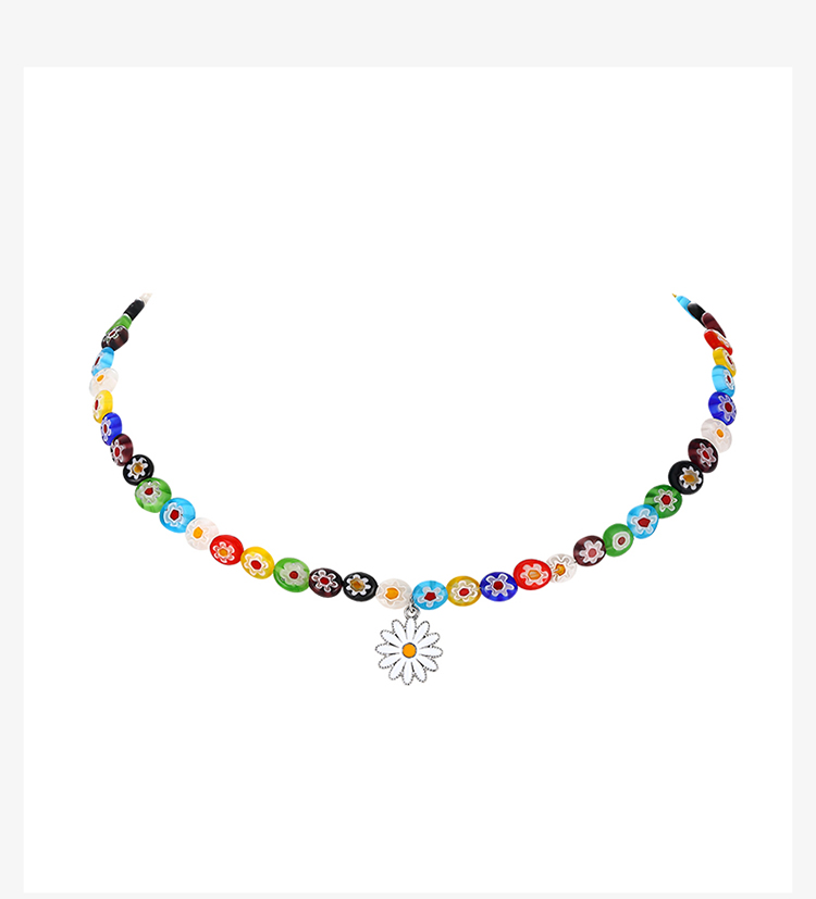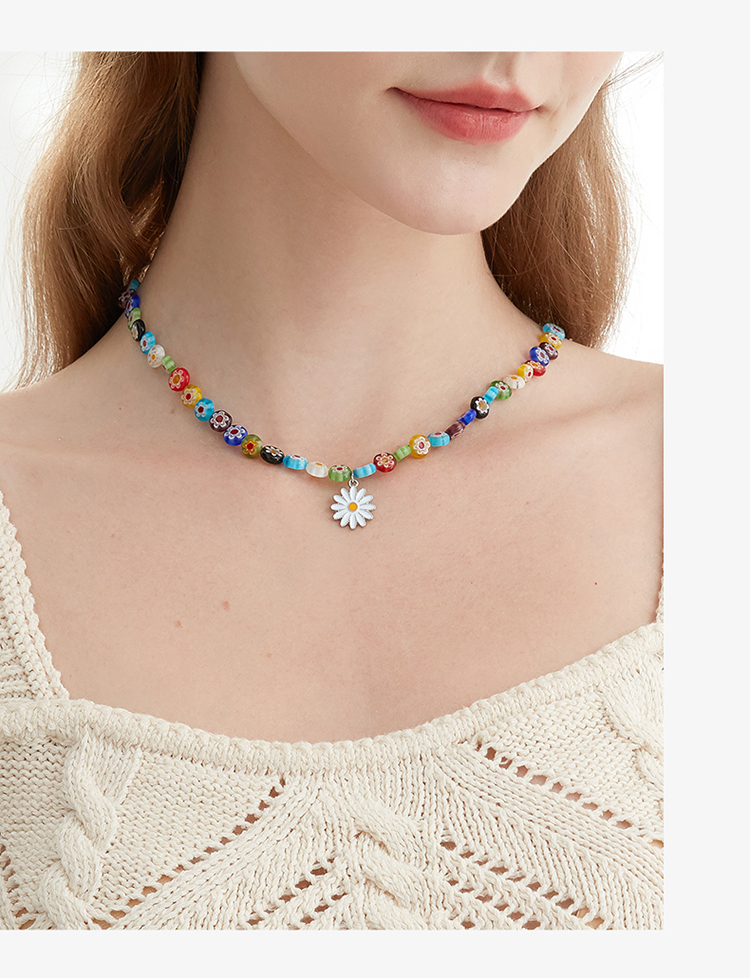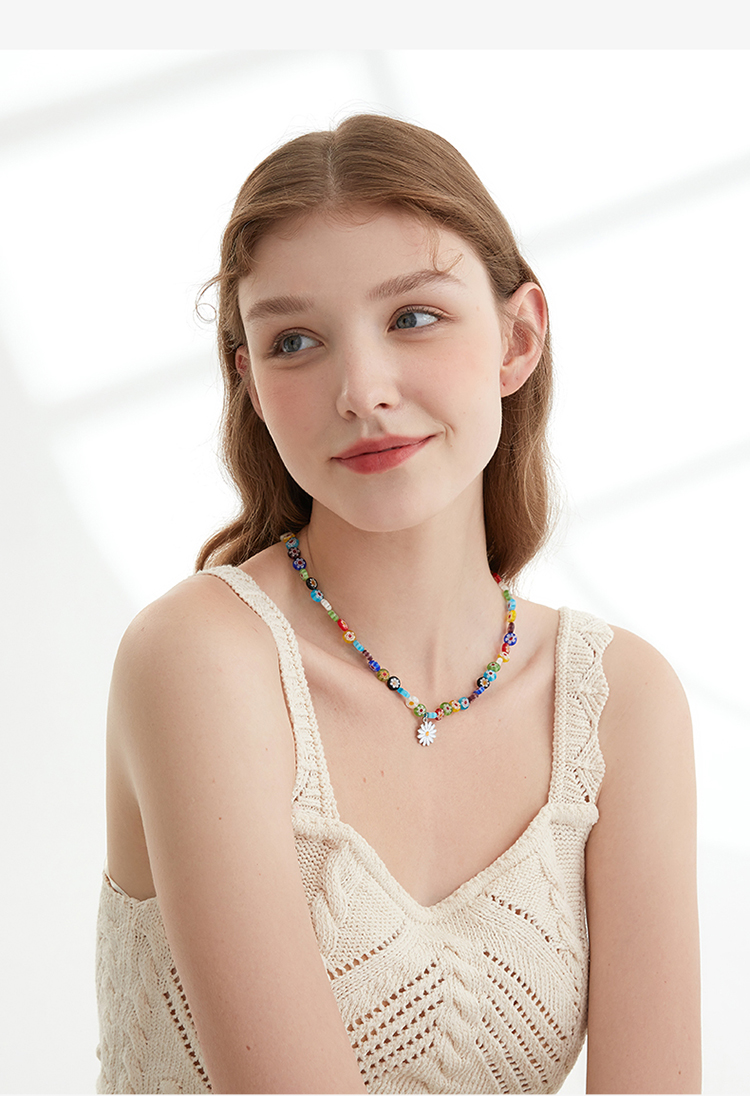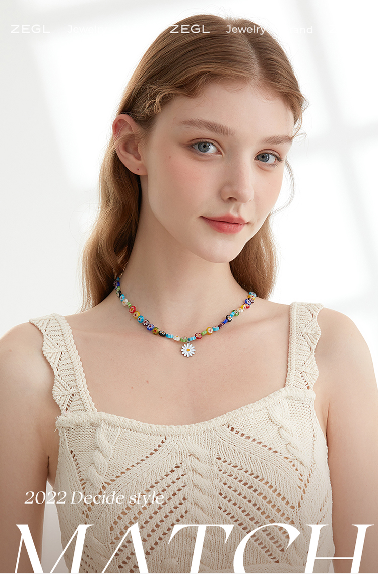 ZEGL夏日多巴胺穿搭琉璃花朵小雏菊项链女小众彩色彩虹串珠锁骨链