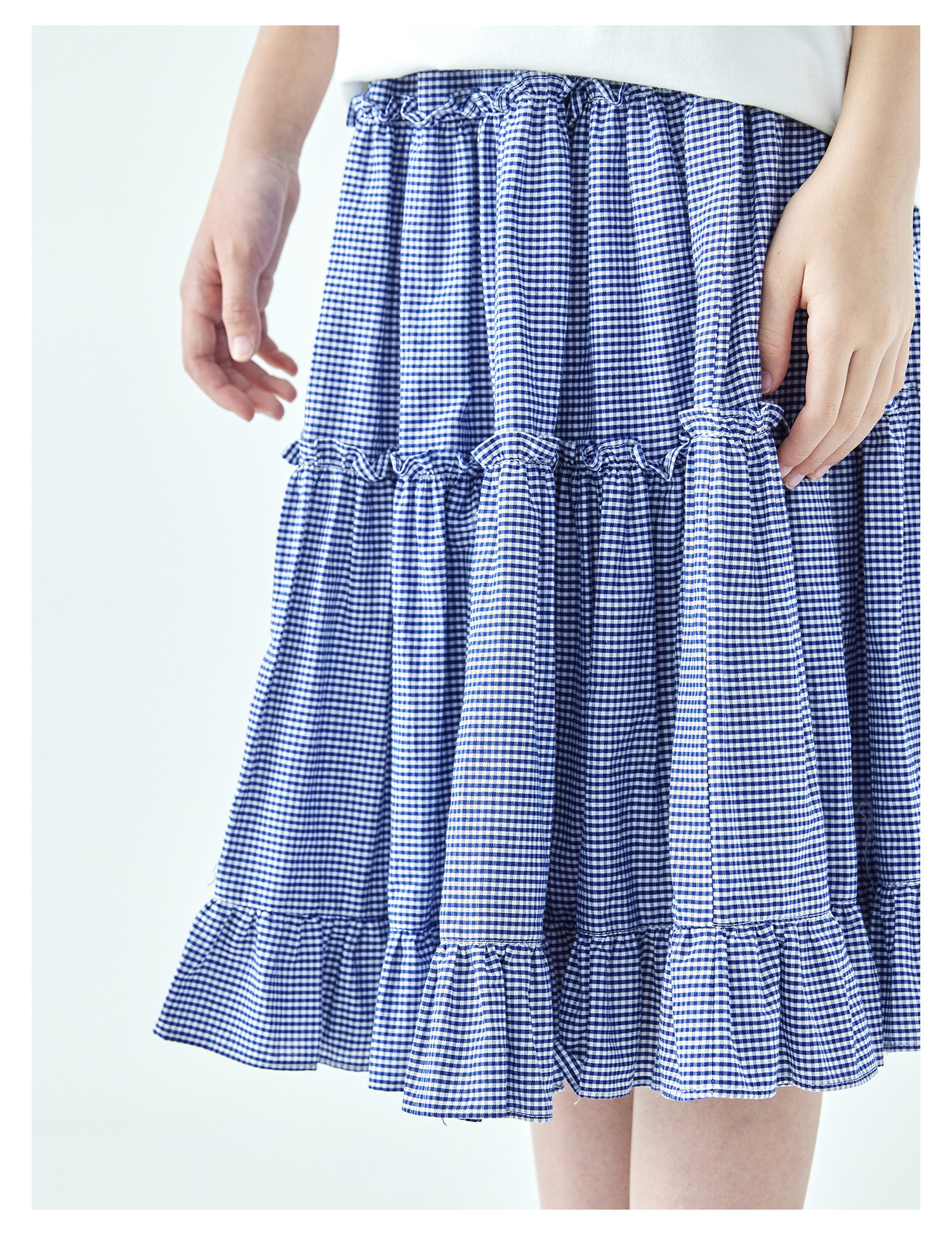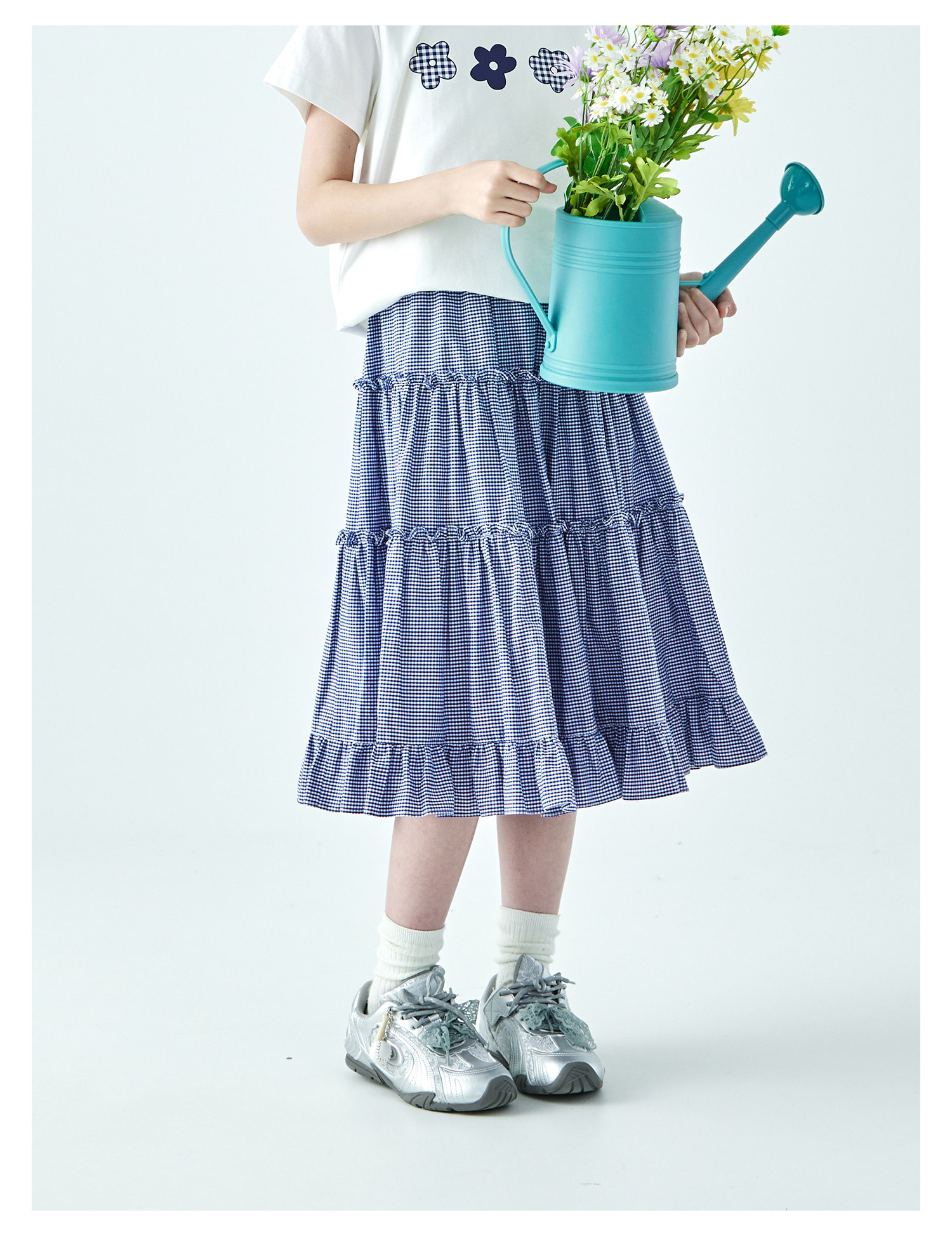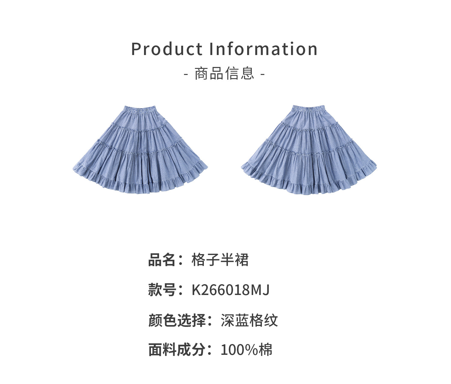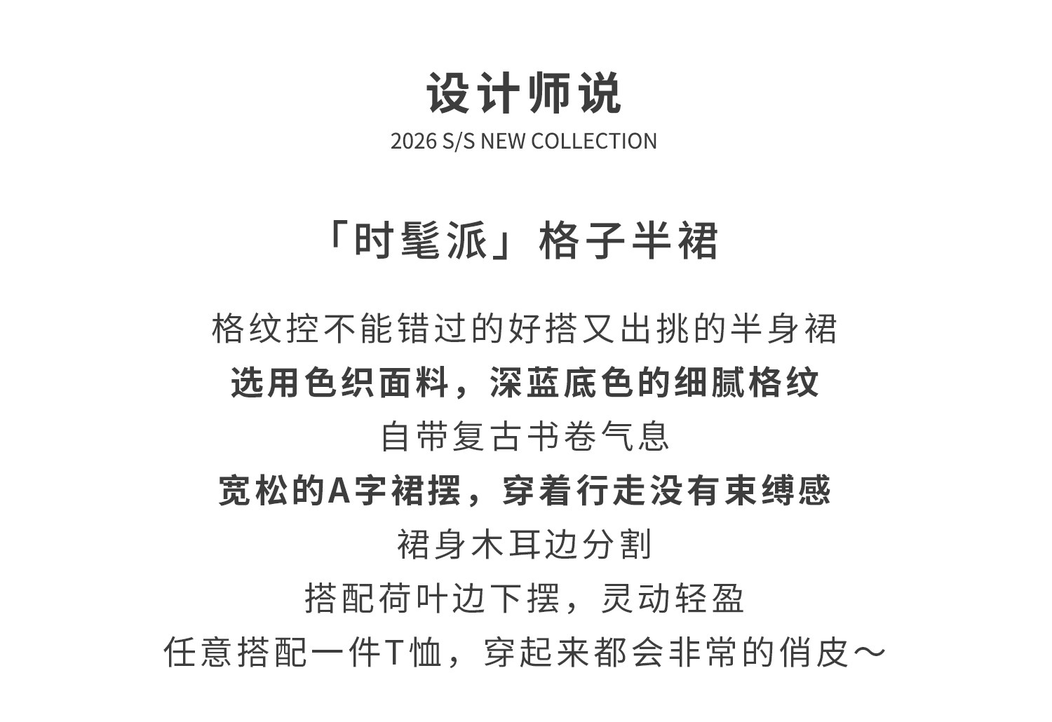 棵初2026年春季新款亲子中大女童深蓝格纹复古半裙宽松好搭A字裙