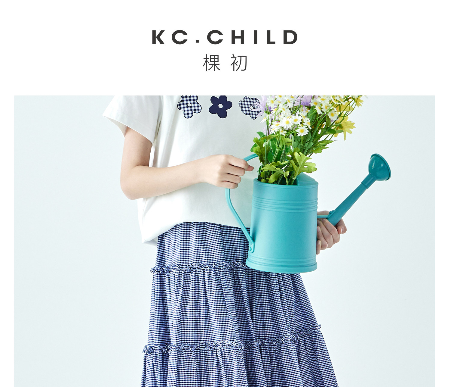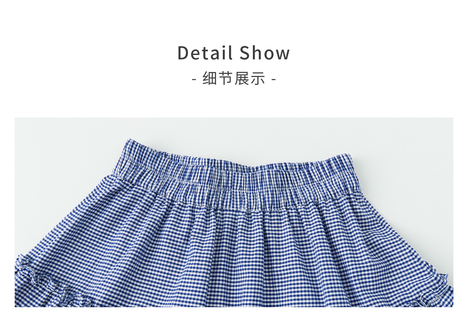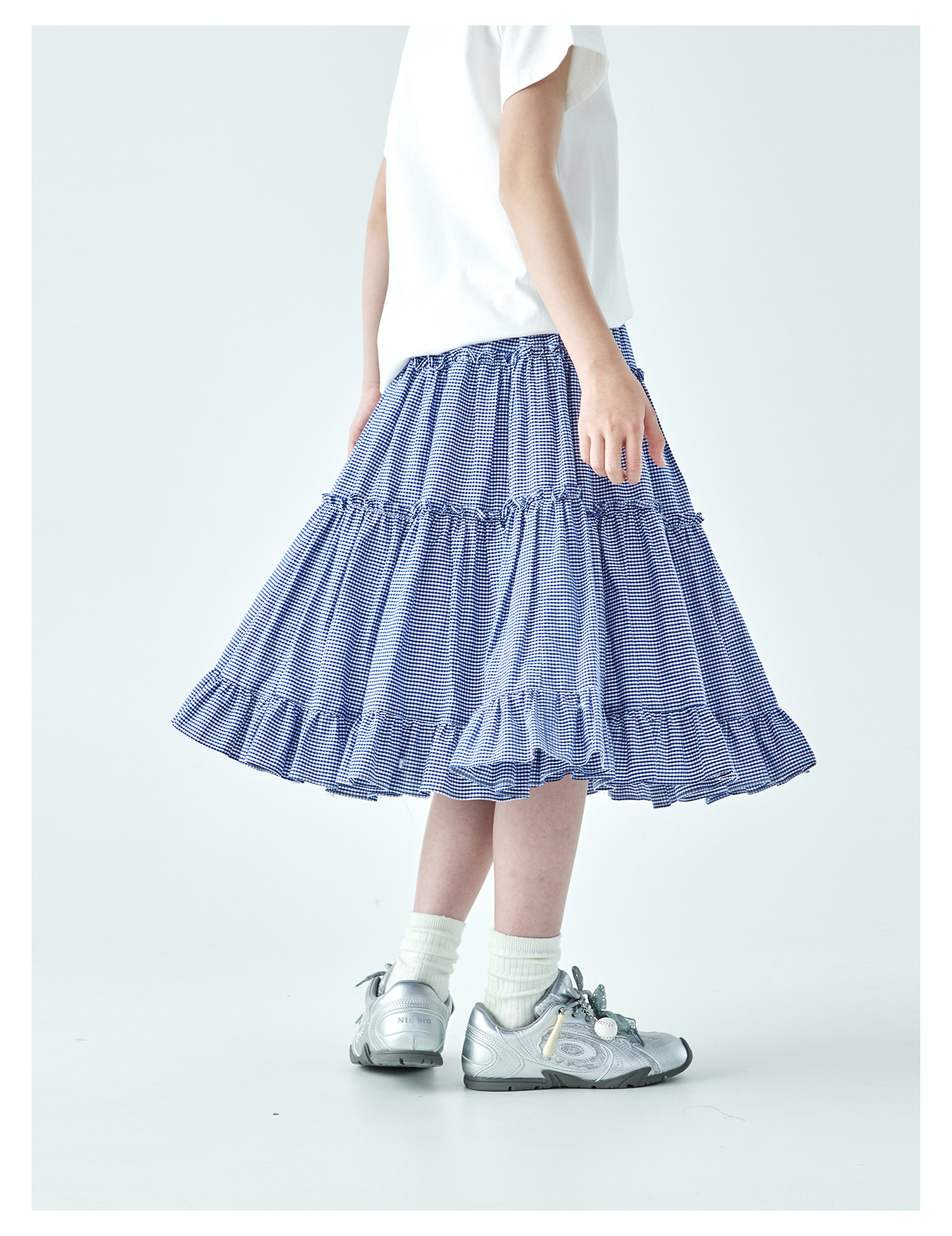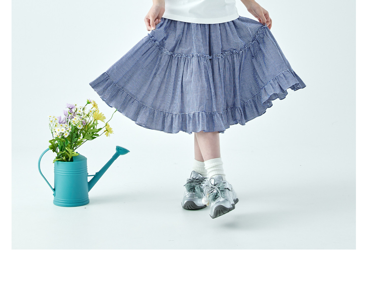棵初2026年春季新款亲子中大女童深蓝格纹复古半裙宽松好搭A字裙