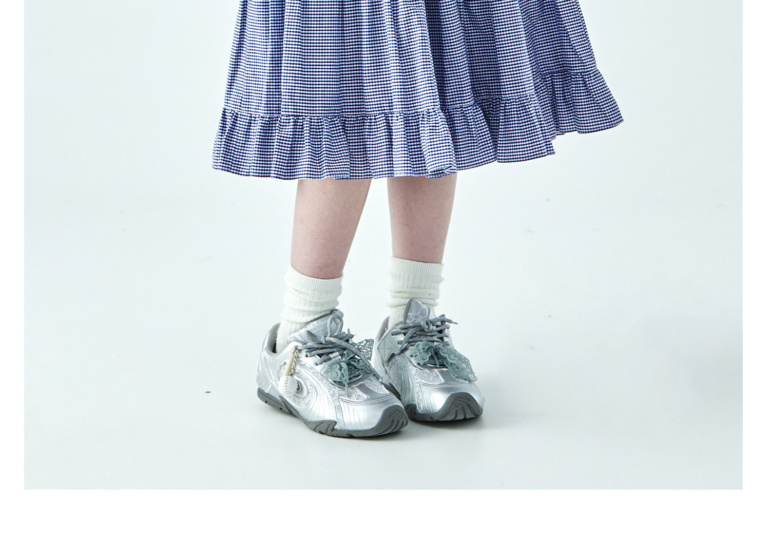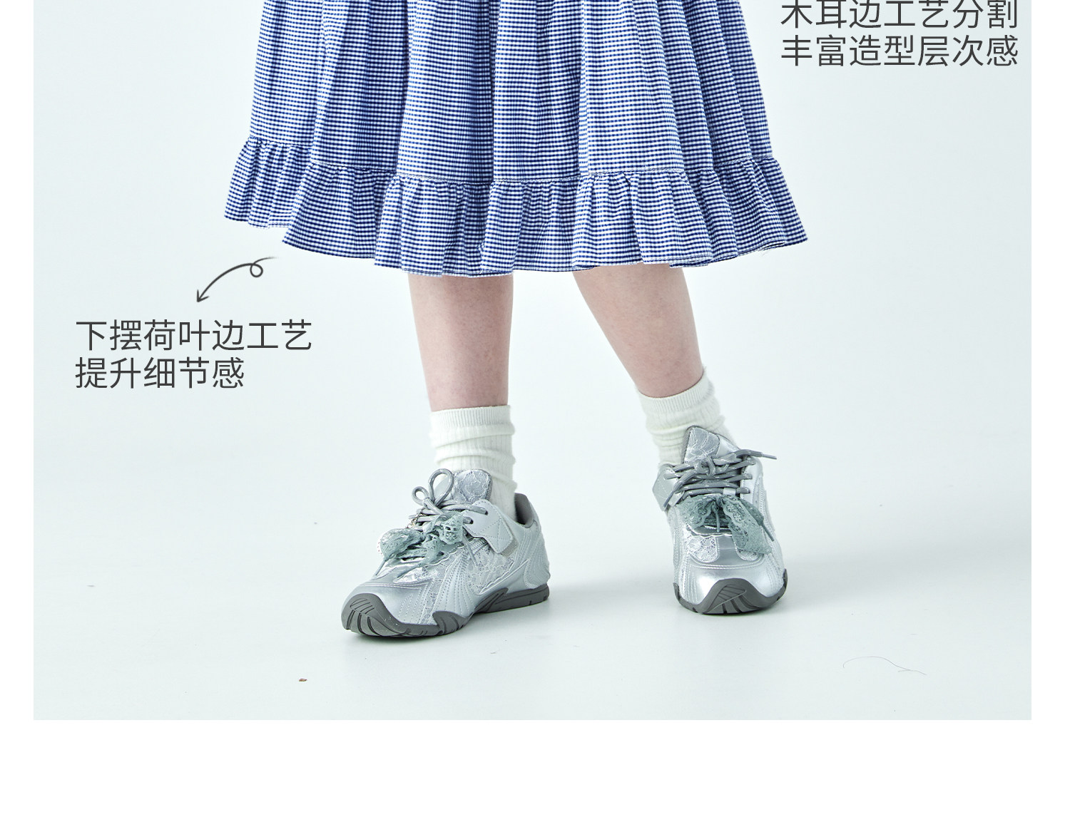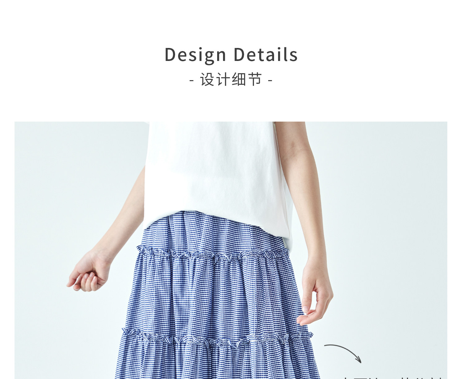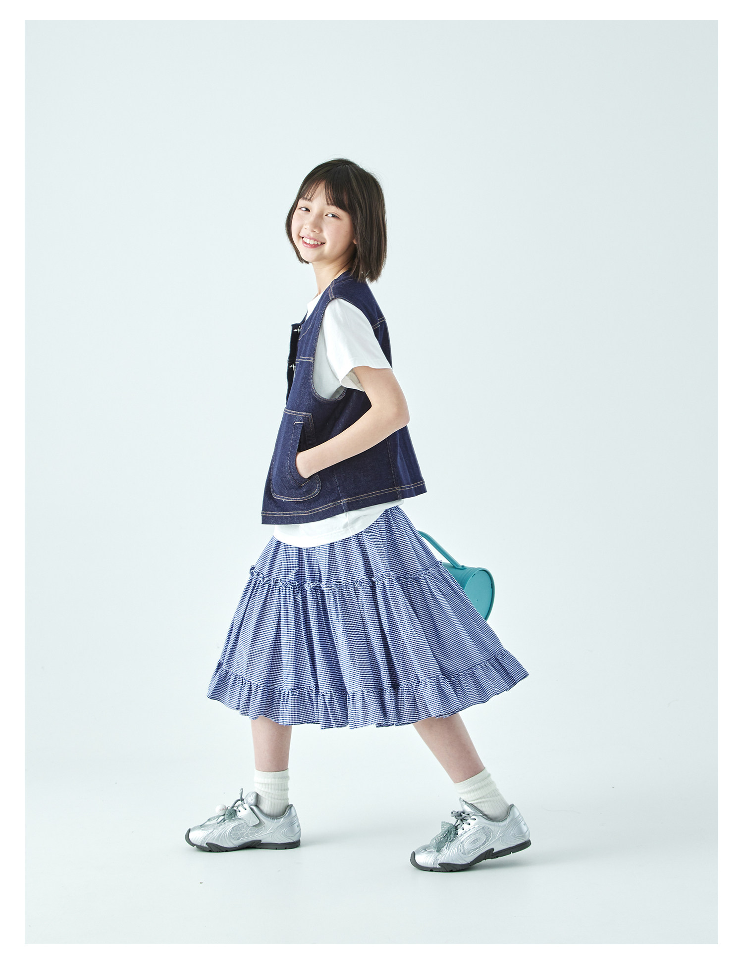 棵初2026年春季新款亲子中大女童深蓝格纹复古半裙宽松好搭A字裙