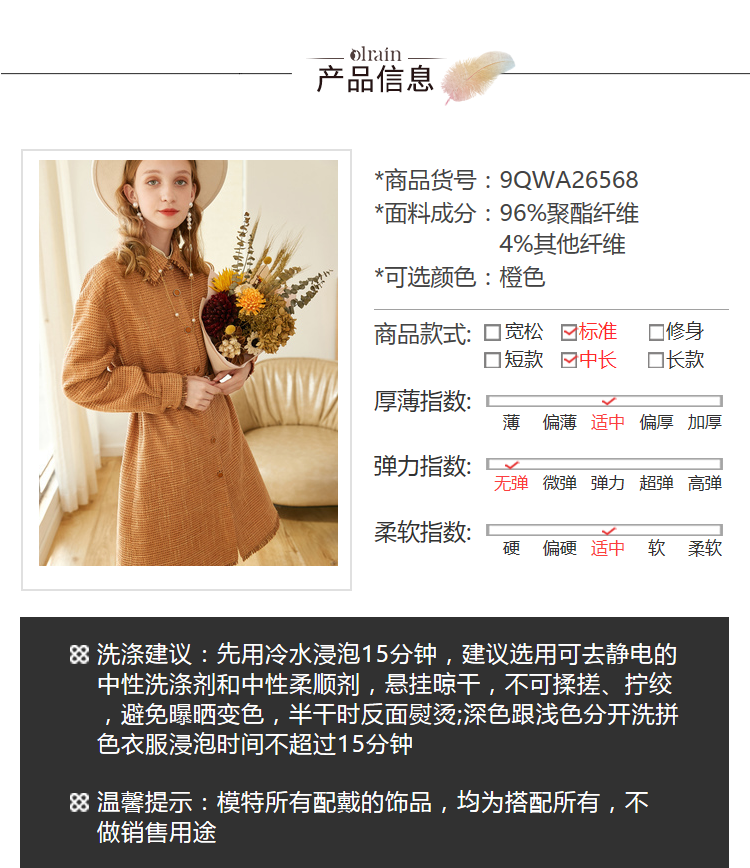 - “精致”是欧芮儿olrain品牌文化的核心,欧芮儿认为,精致的女人,不但要外在动人,更要内在迷人,内外兼修,有魅力、有气质、有内涵,自信而不自傲,优雅而不矫揉,自有万种风情而不轻浮,更不故作矜持。