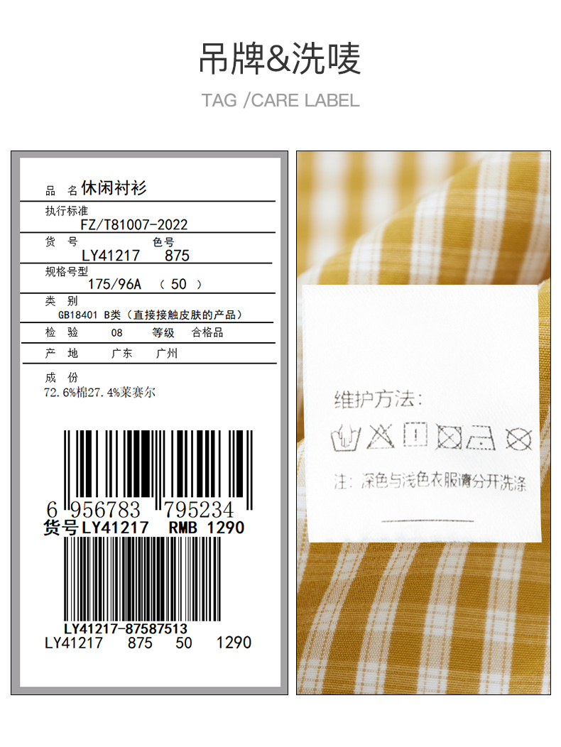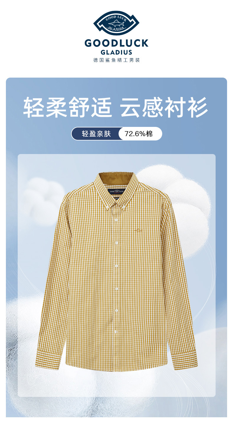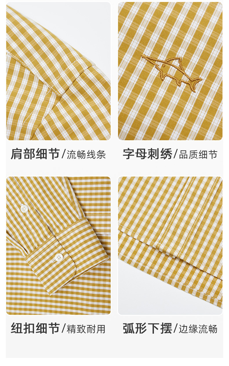【莱赛尔】德鲨鲨鱼长袖衬衫男2026春季新款休闲格子衬衣