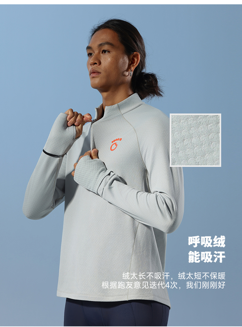原创单品丨男女加绒立领半开拉链上衣 呼吸绒 能吸汗 功能袖口护掌护手