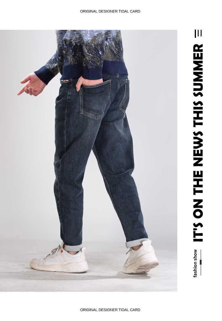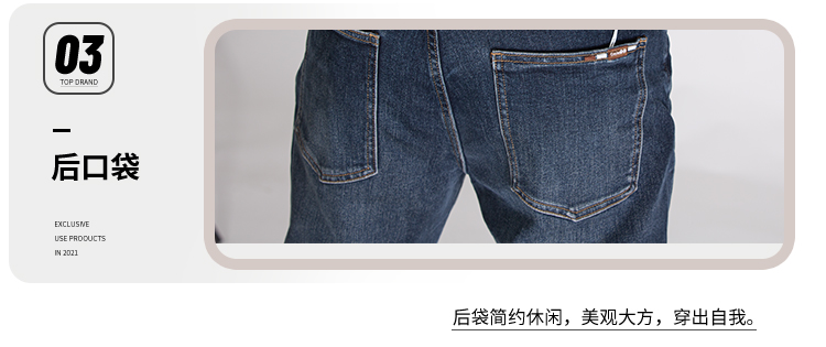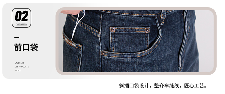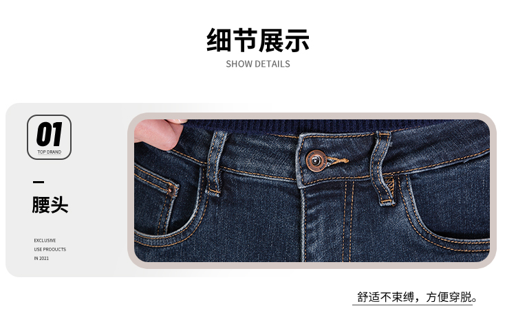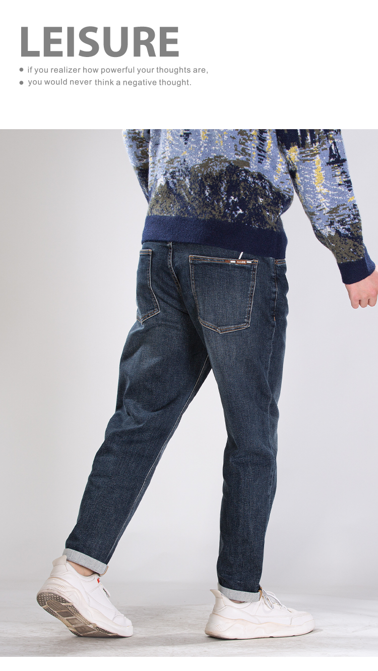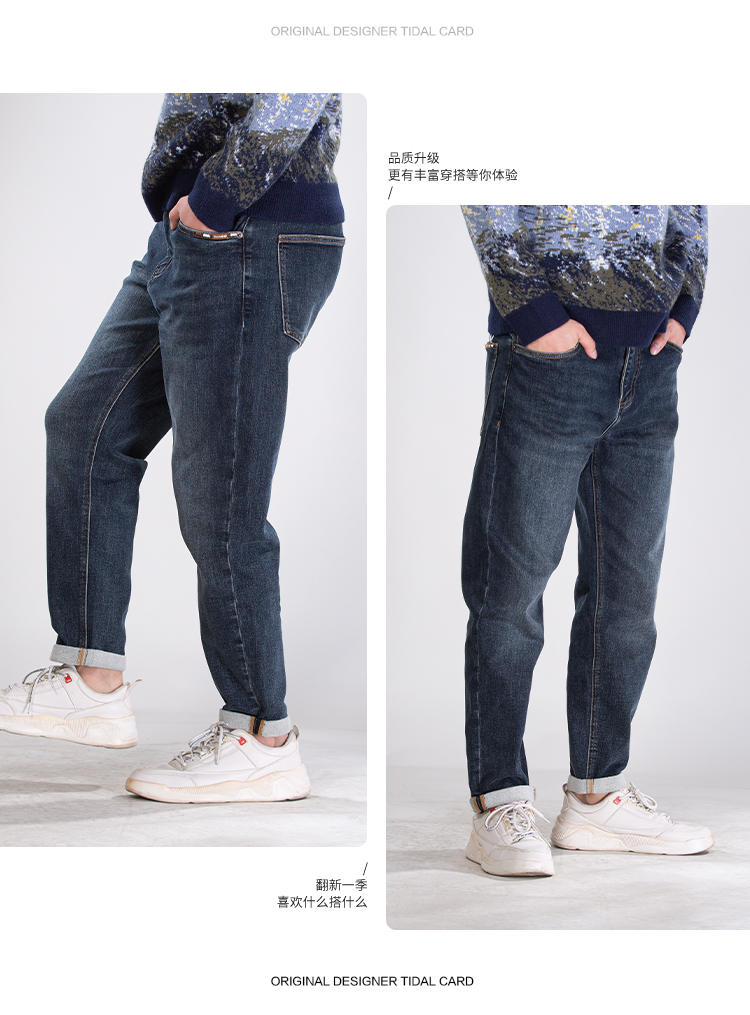 DRONKOO 2025 正常腰左袋绣线织唛底磨毛厚牛仔长裤