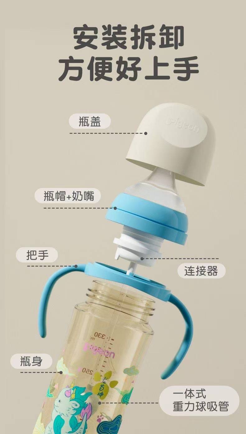 贝亲宽口径奶瓶重力球吸管配PCS(可搭配任意贝亲宽口奶瓶)带吸管刷
