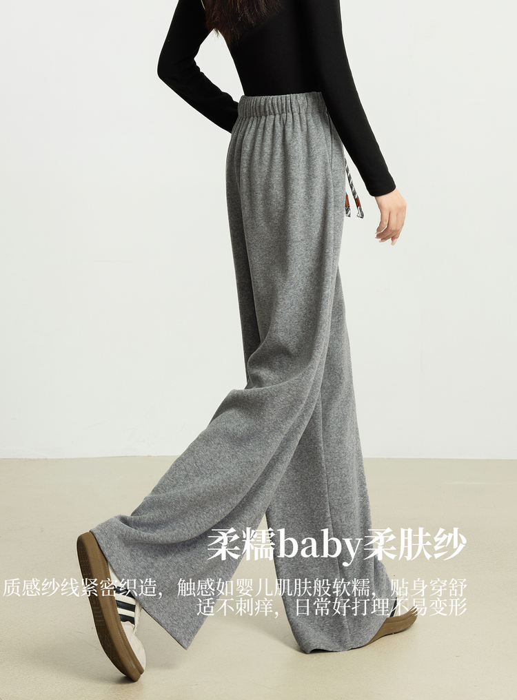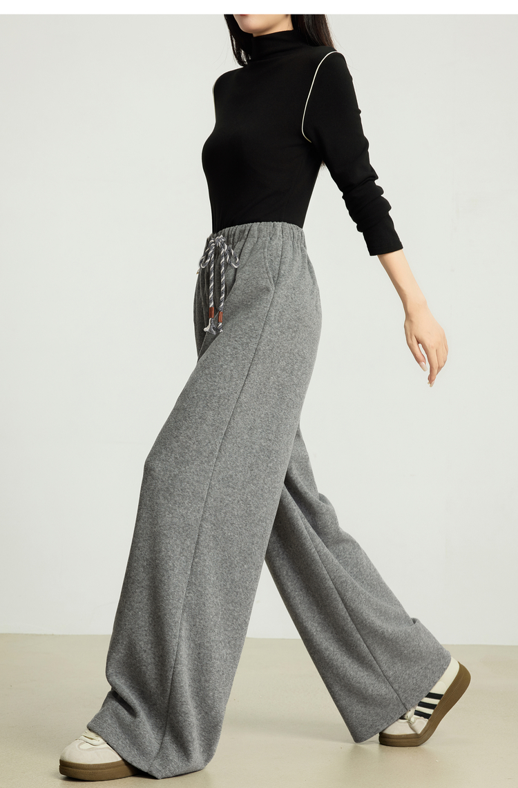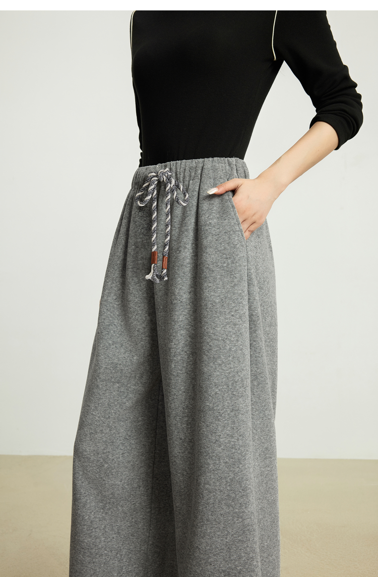 【10/15新品】熙世界【松弛过冬裤】灰色加绒阔腿裤女秋冬加厚休闲运动风休闲裤