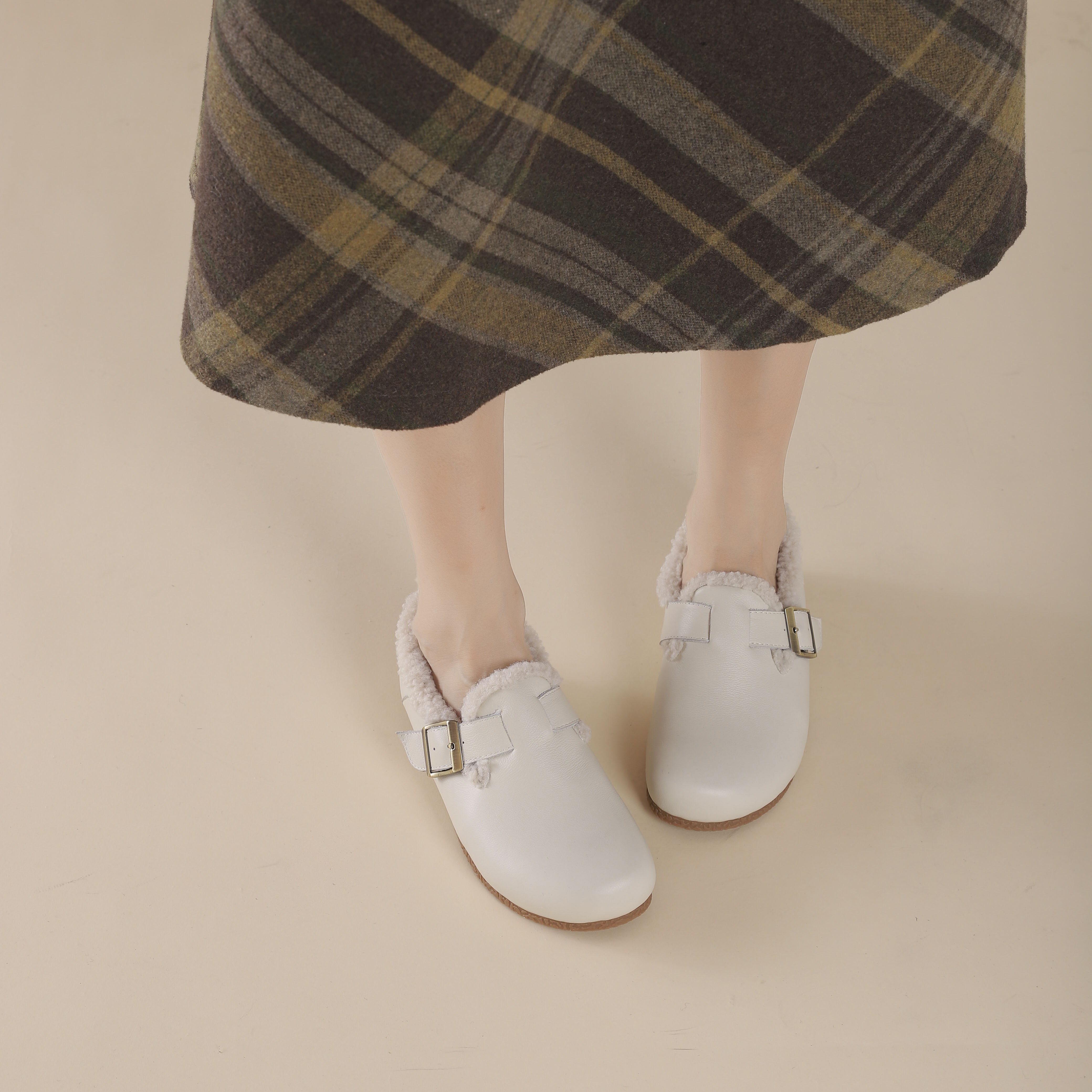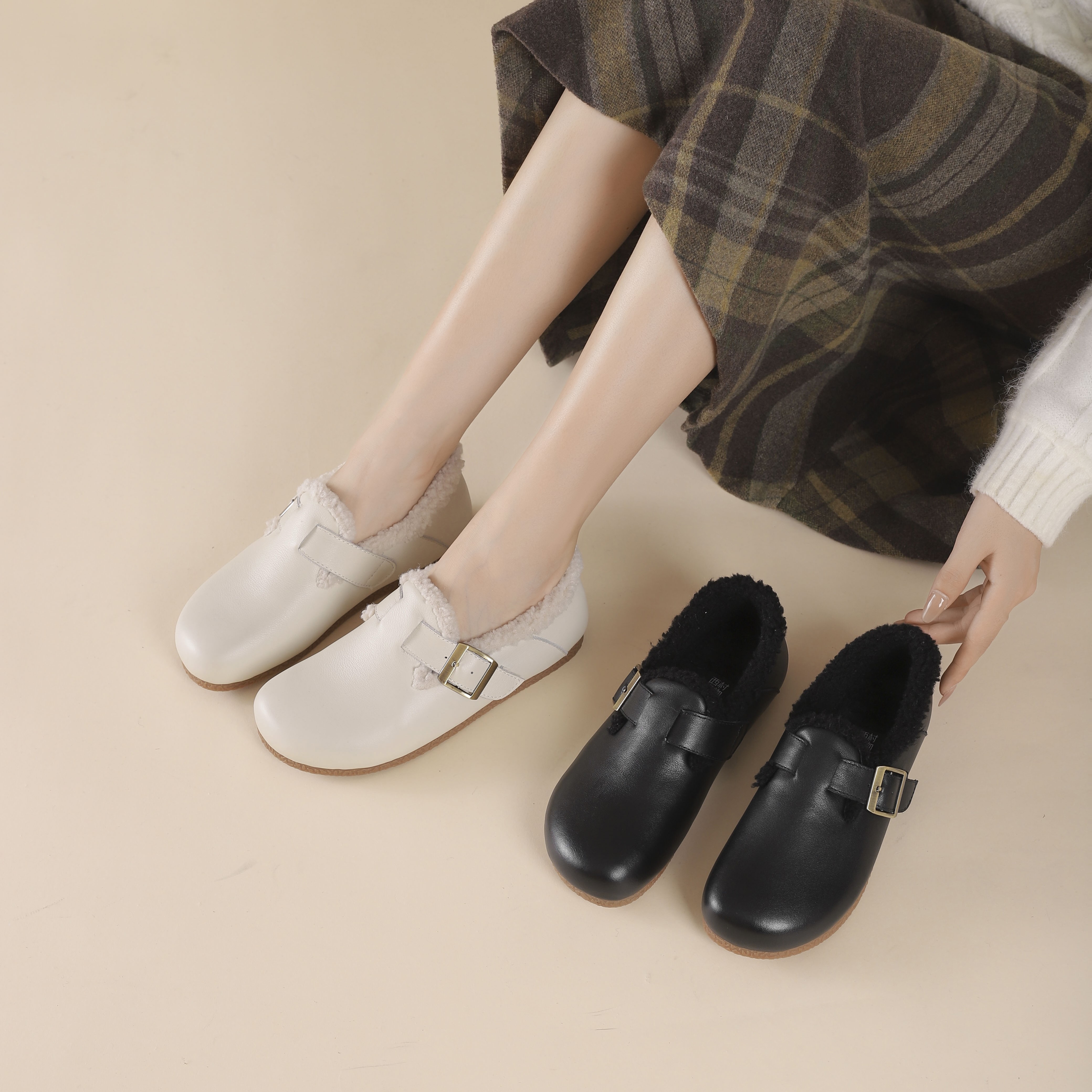 西村名物2024年冬季新款厚底防滑系带舒适保暖低帮毛毛鞋T24DM47901