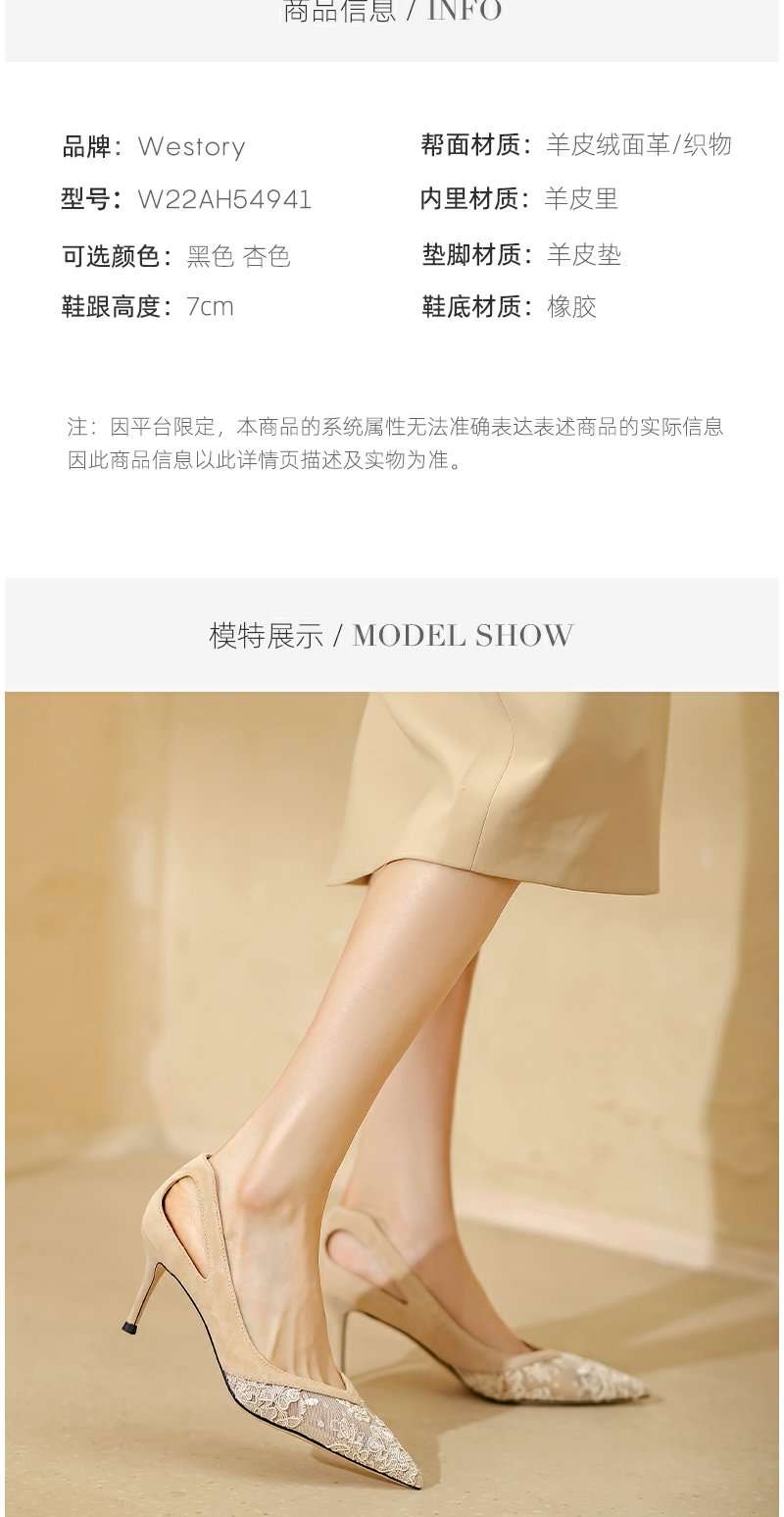 westory镂空花纹网纱透气不累脚细高跟单鞋女2022年夏季新款W22AH54941