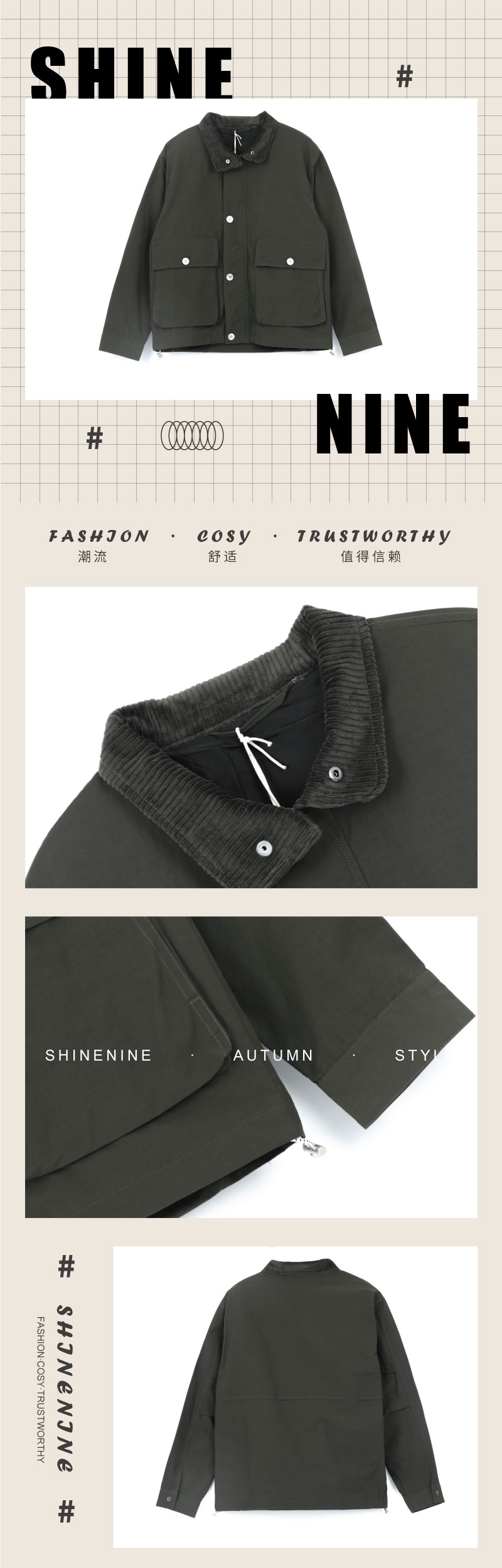 E933272233灯芯绒衣领休闲夹克