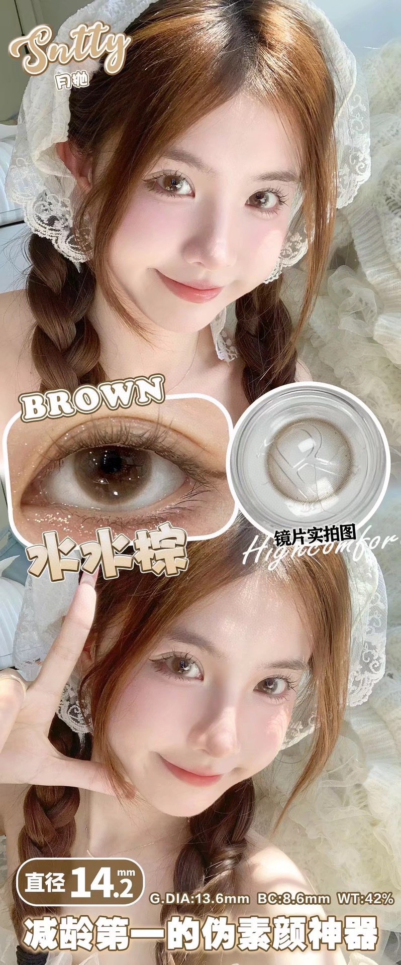 Sntty月抛美瞳 水水棕 14.2mm