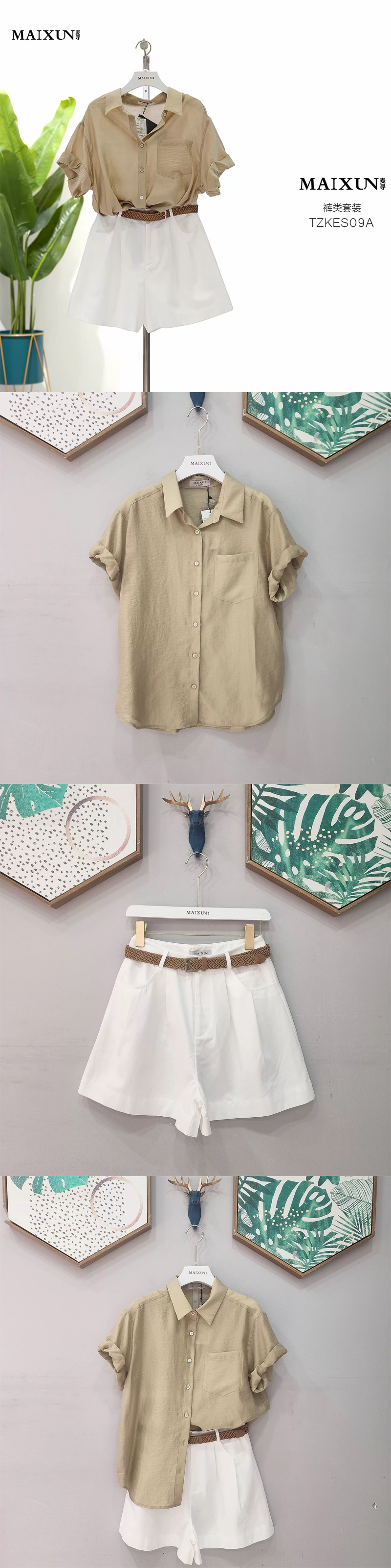 麦寻卡其小衫短裤套装TZKES09A