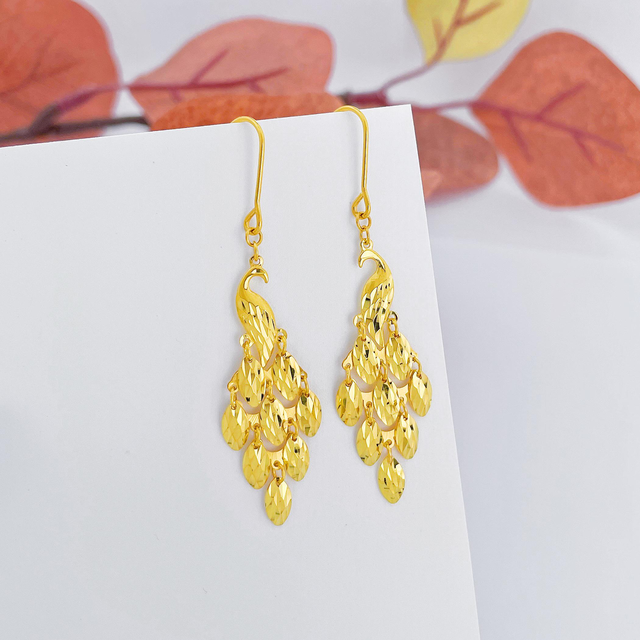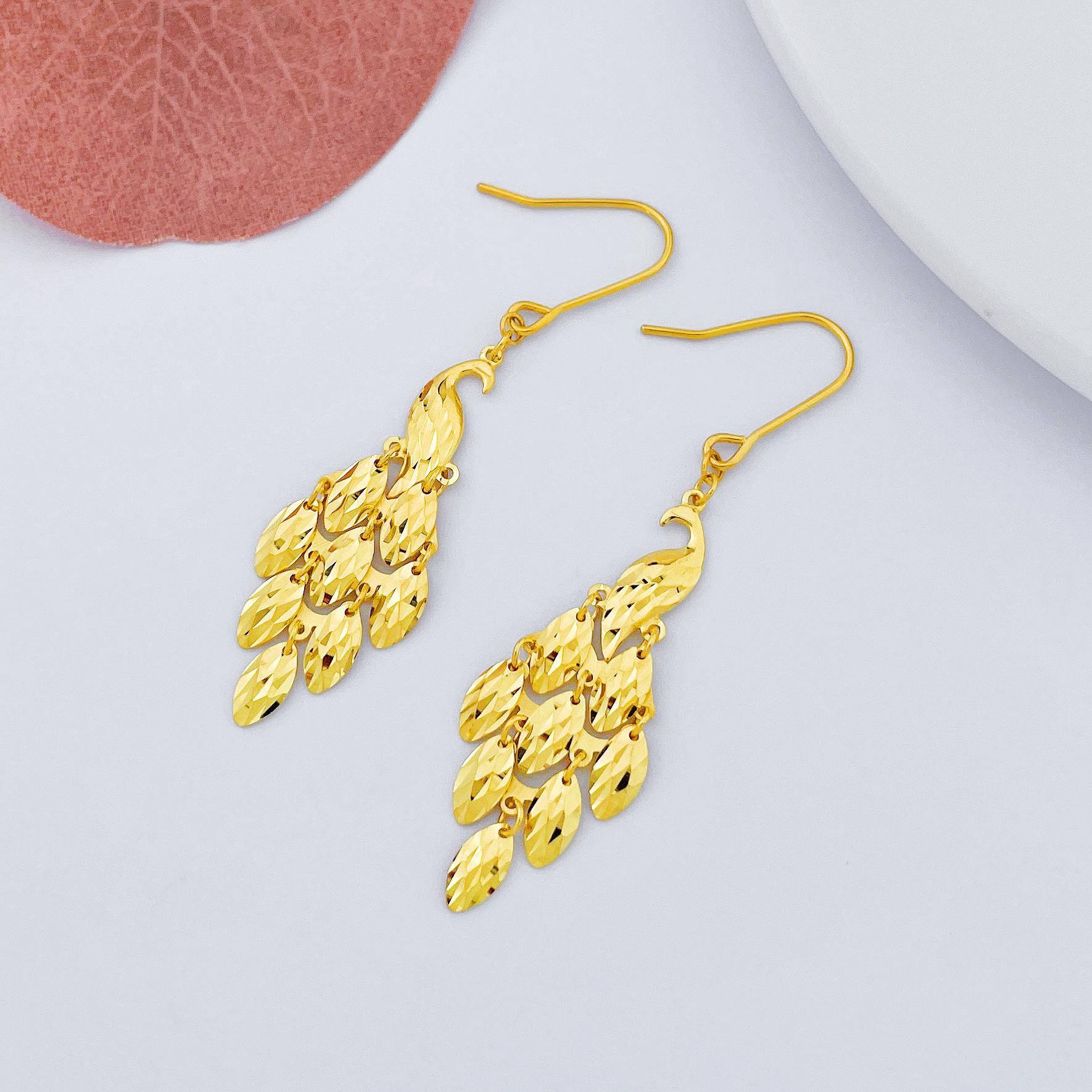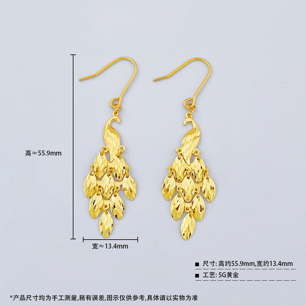 【限时克减150元】足金999 #婚庆 (足金999字印)5G黄金左右对称车花孔雀耳钩耳吊(5GES00444)(预售产品下单后不退款不退货不换货不补差价)