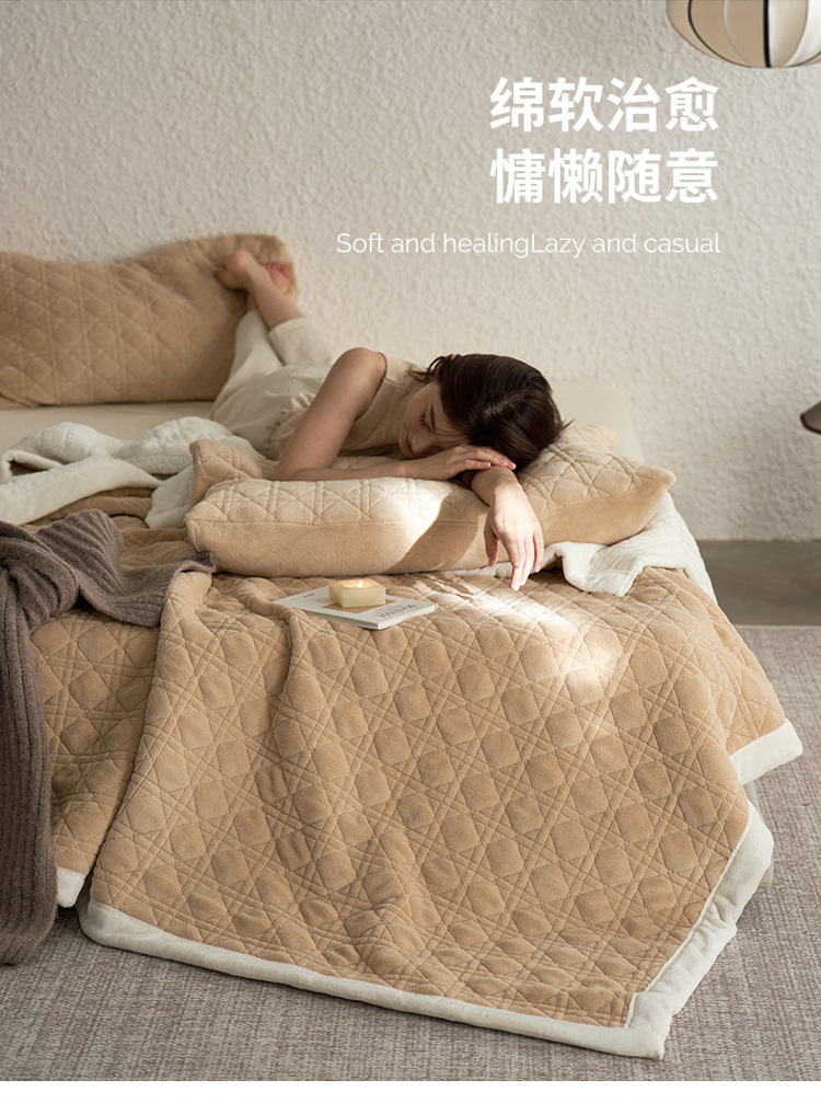 老米优品🎈【牛奶绒午睡毯】双面加厚520g, 秋冬牛奶绒毛毯 午睡毯子~~加厚纯色休闲沙发盖毯