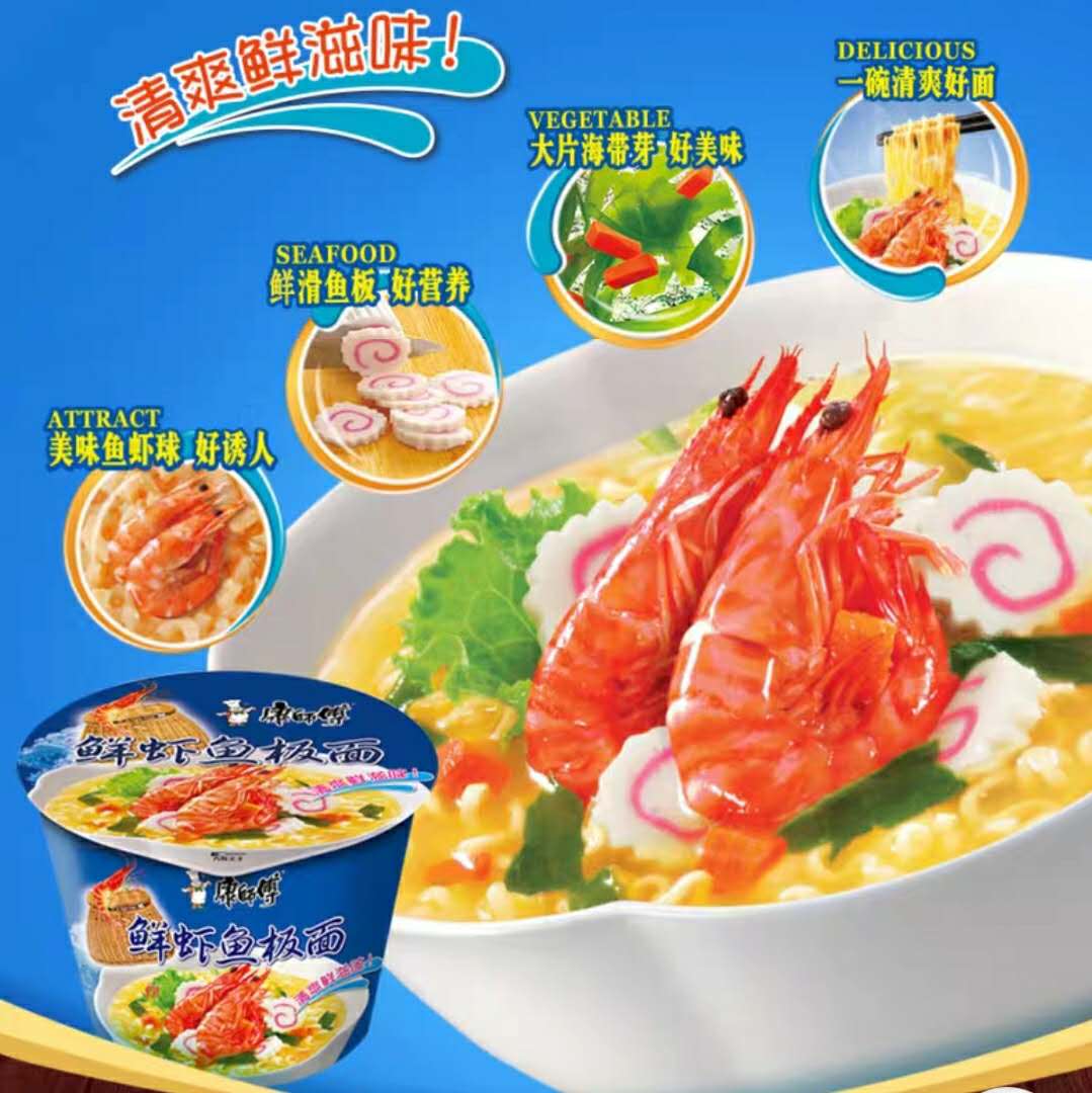 康师傅鲜虾鱼板面碗装98g