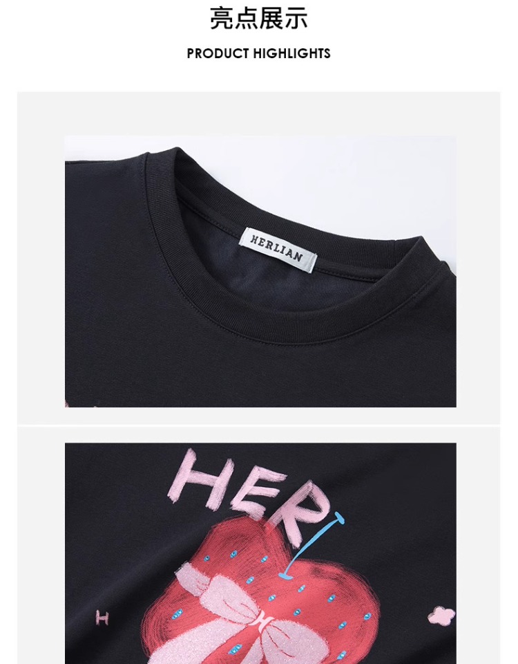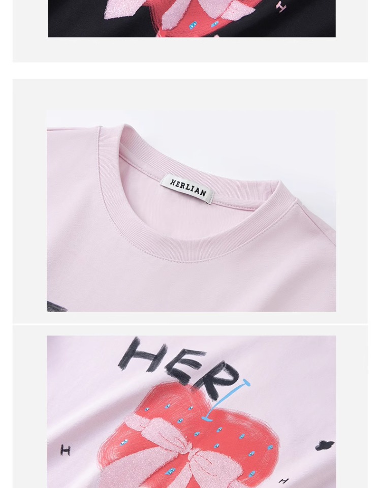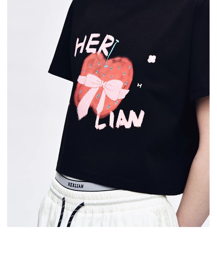 Herlian2025年春夏新品一颗苹果蝴蝶结系带印花TEE短袖