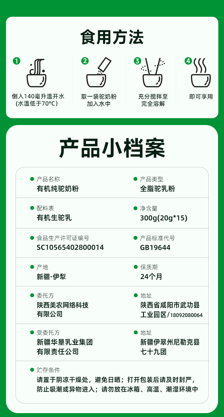 西域美农新疆有机驼奶粉300g 新疆牧场骆驼奶粉