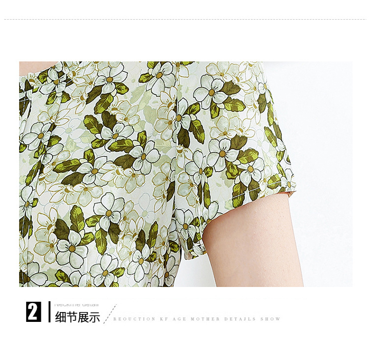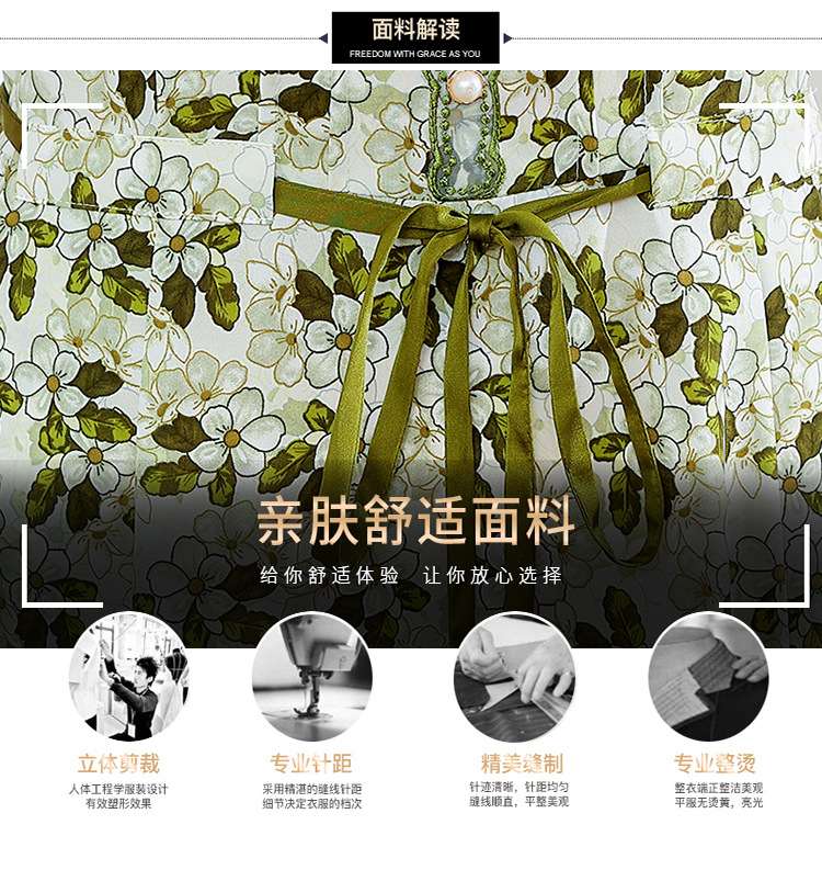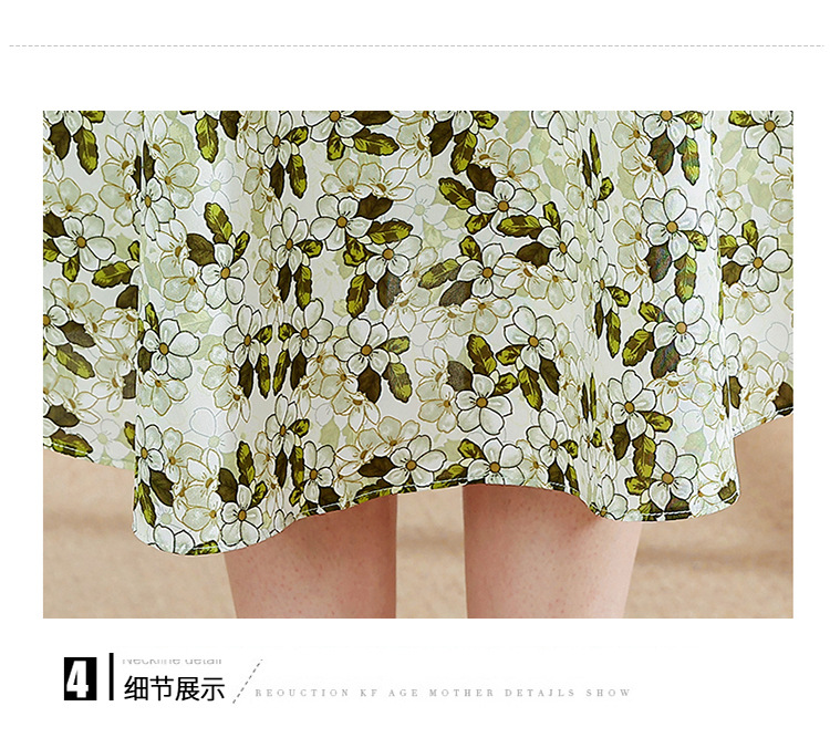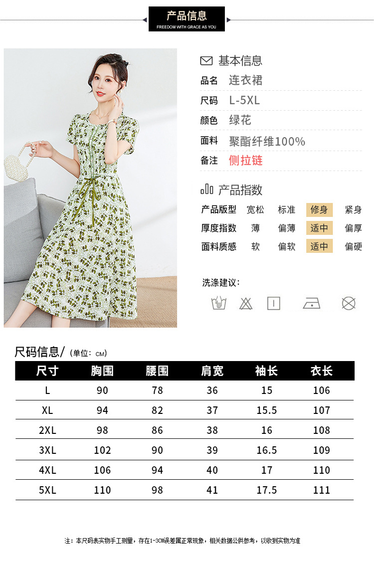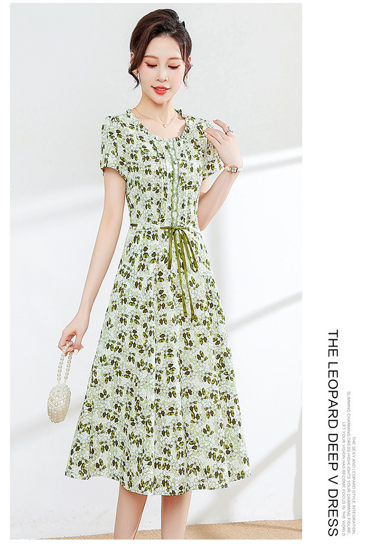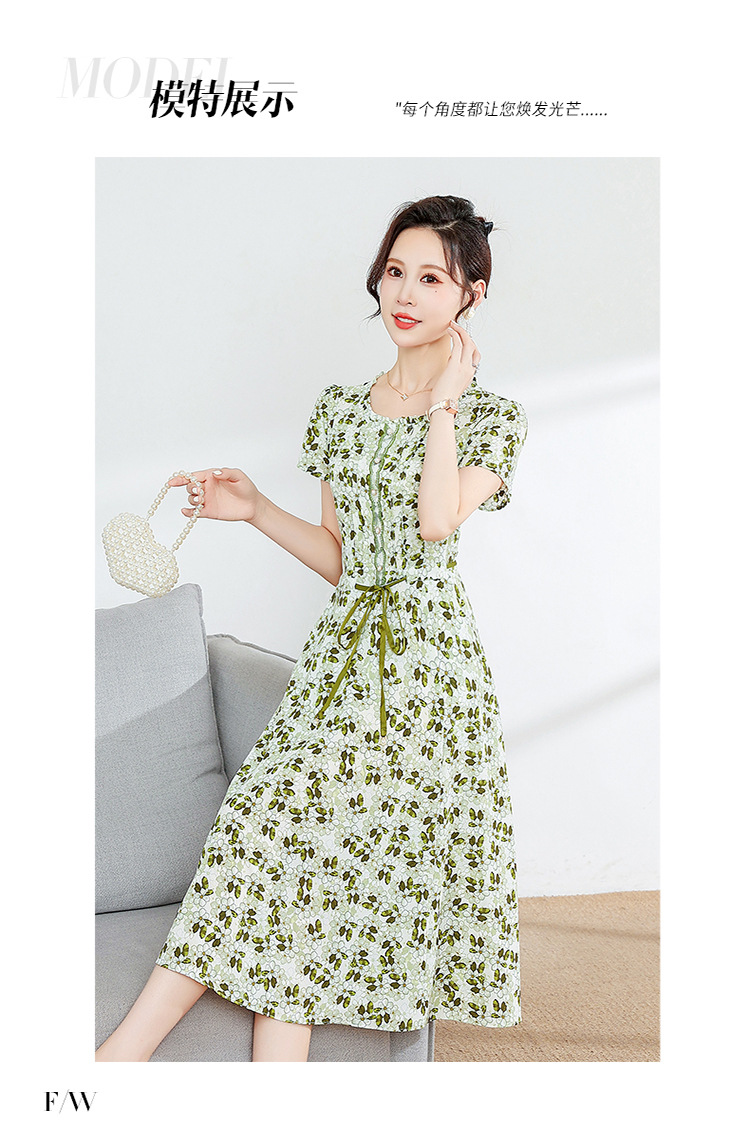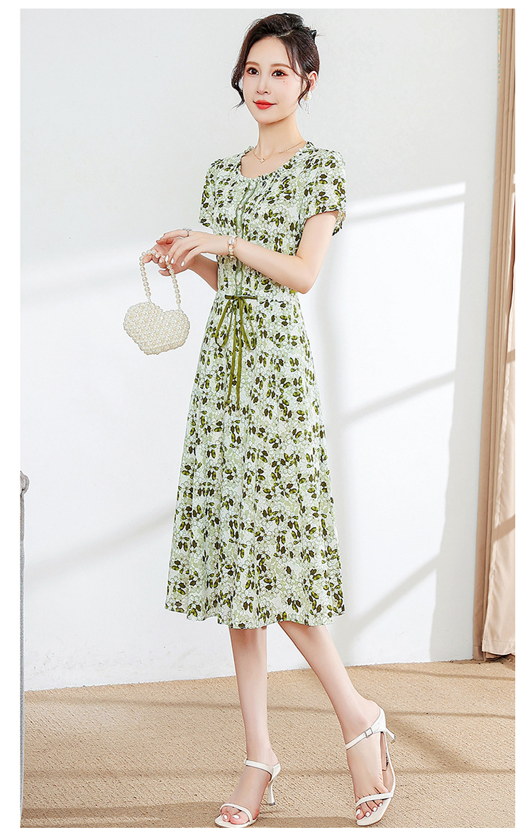 夏款修身,印花中长款大码系带时尚雪纺裙圆领短袖连衣裙QYM-FL-23778-L
