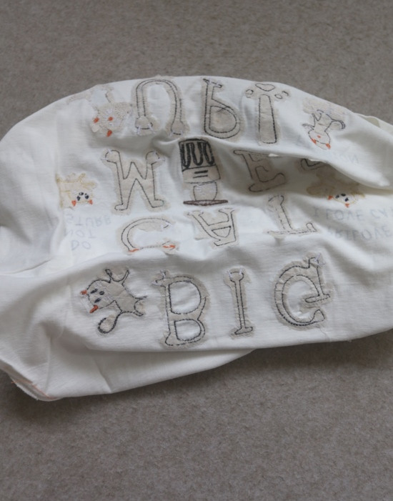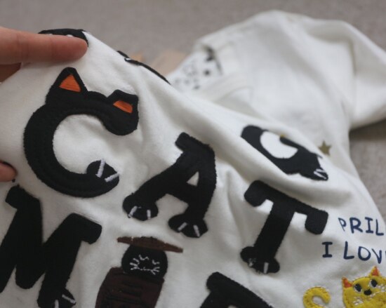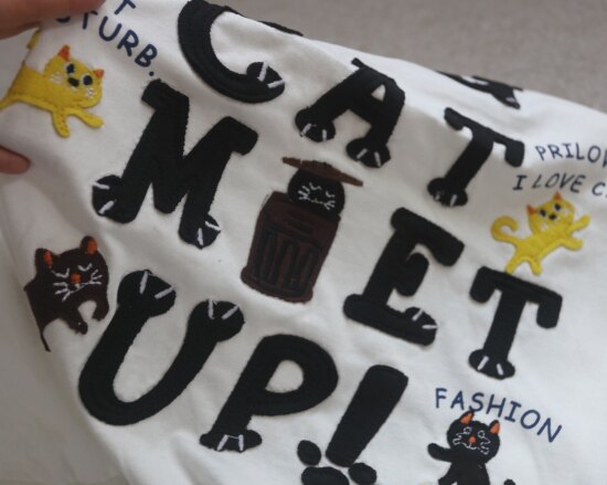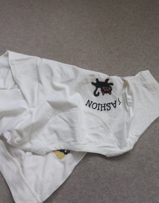 图案 刺绣/贴布/环保胶浆 手缝+机车缝 所以同款图案的位置 会有稍许不同