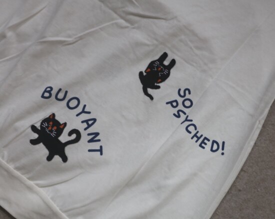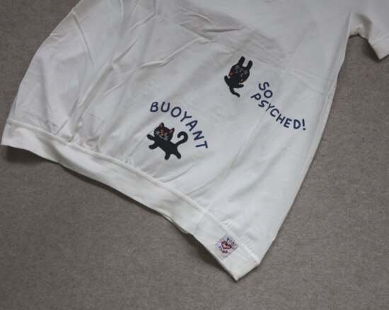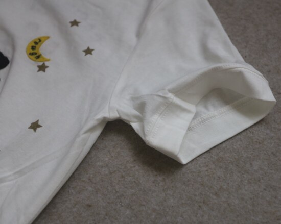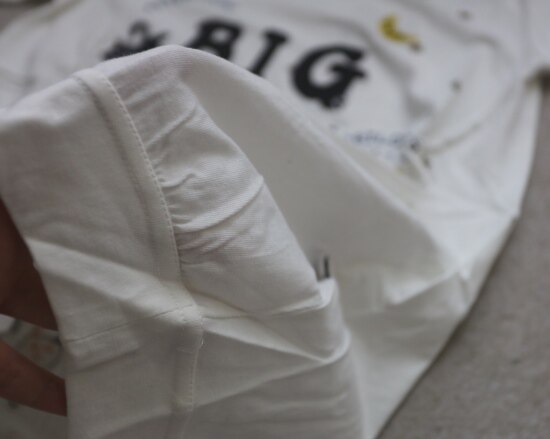 所有在衣身上的印染 都是环保胶浆 能透出底部面料纹路 各角度看都不反光