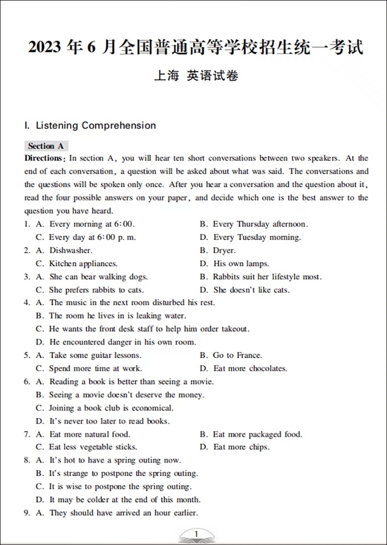 【上海高考】2024版上海高考英语真题解析 赠答案详解