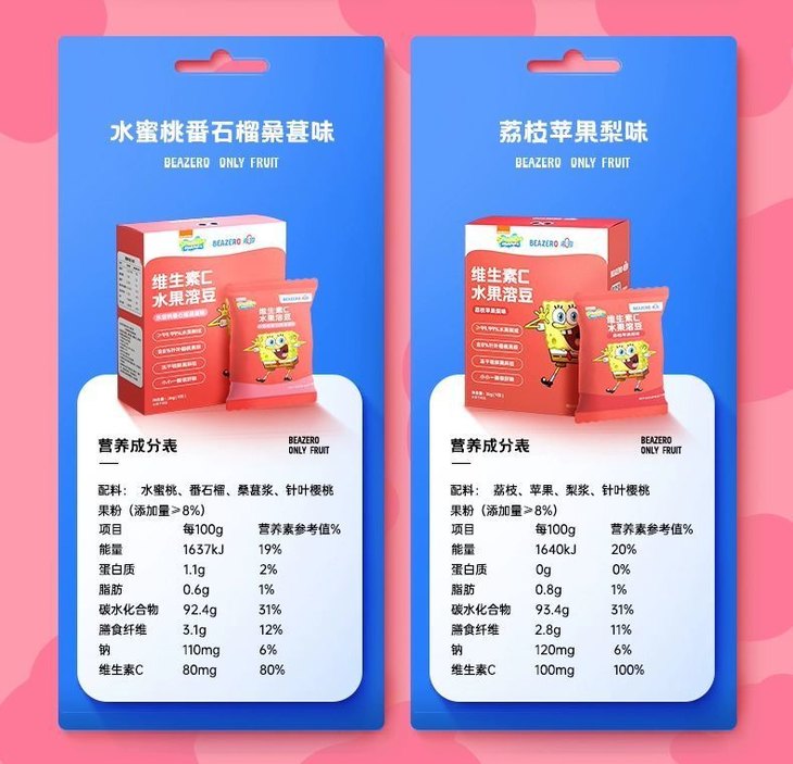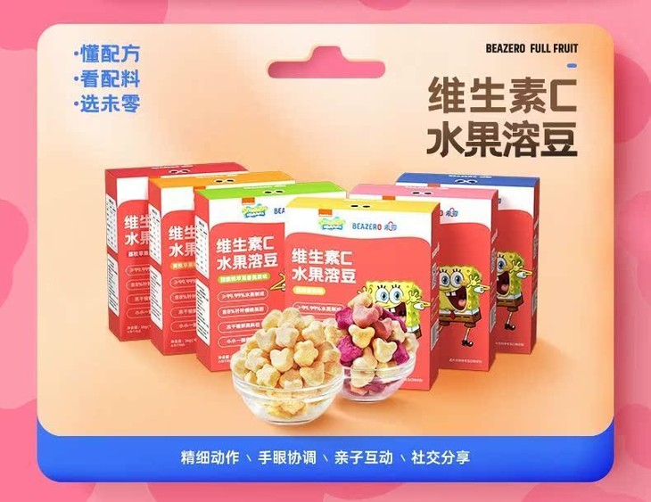 【一般贸易】未零beazero海绵宝宝水果溶豆24g*1盒6包