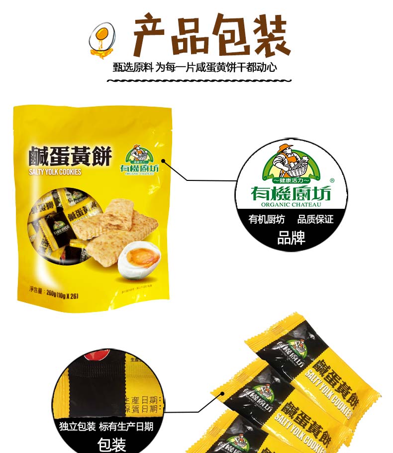 中国台湾有机厨房咸蛋黄饼干260g/051933 口感酥脆醇香浓厚每一口欲罢不能
