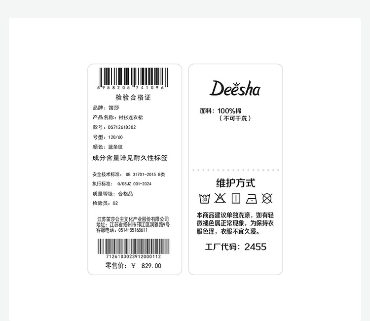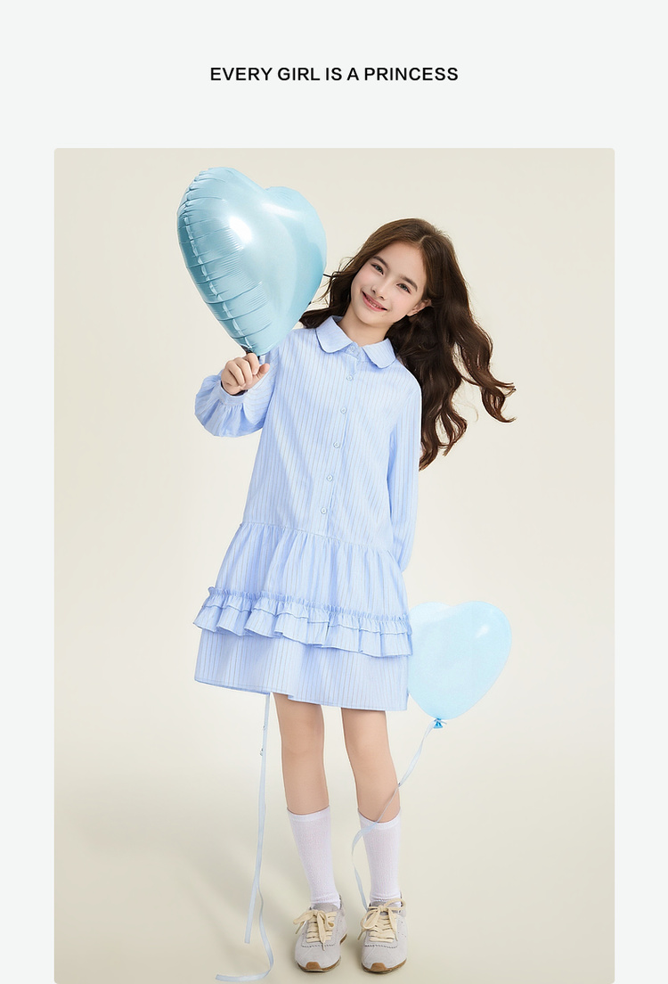 笛莎Deesha 童装女童连衣裙2026春新款衬衫式连衣裙