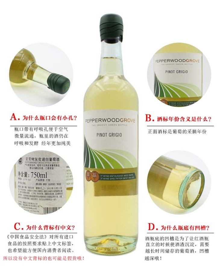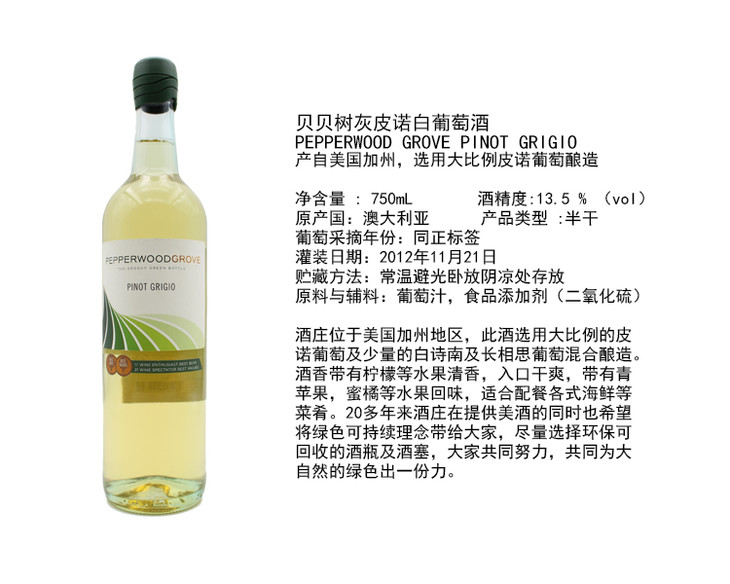 贝贝树-灰皮诺白葡萄酒 Pepper Wood Pinot Grigio 750ml