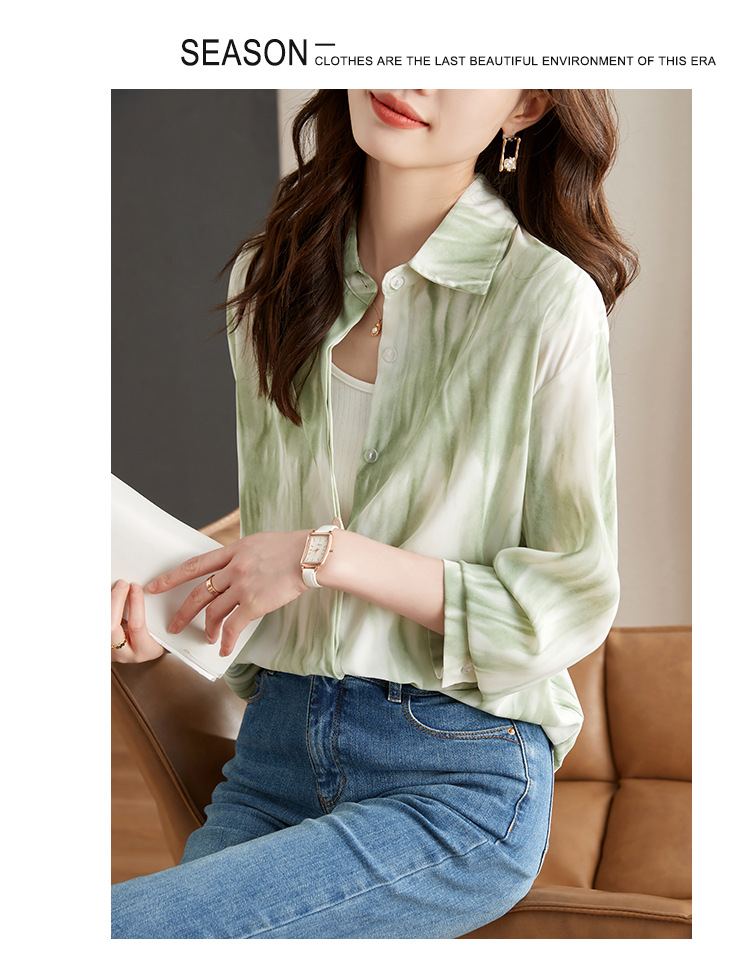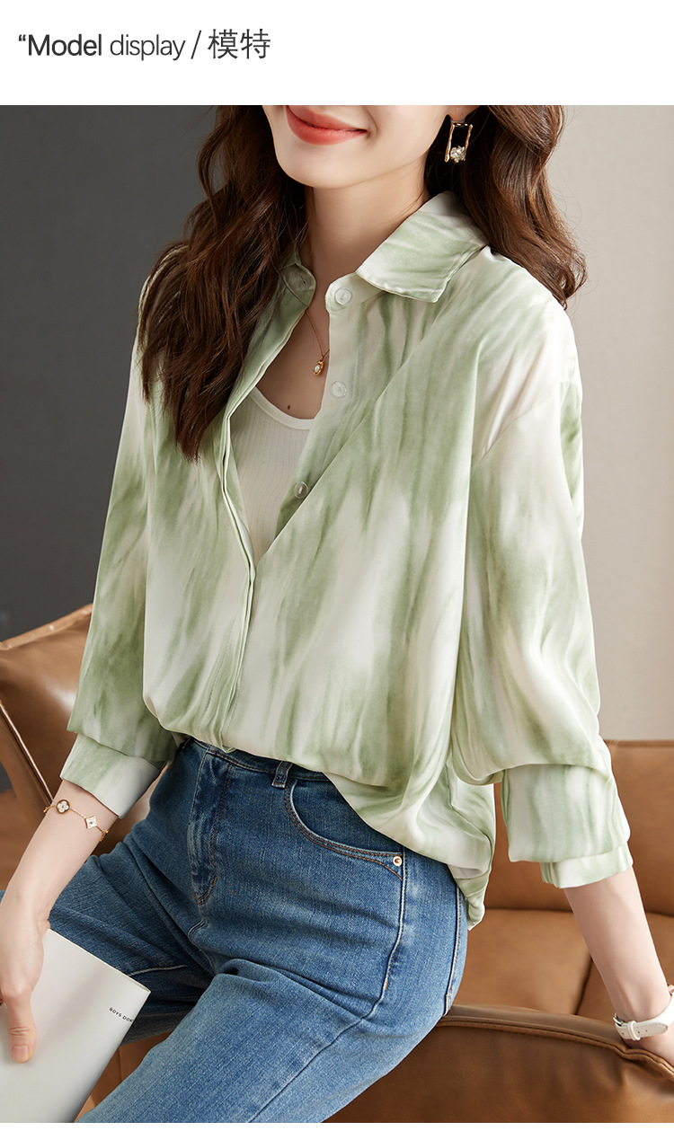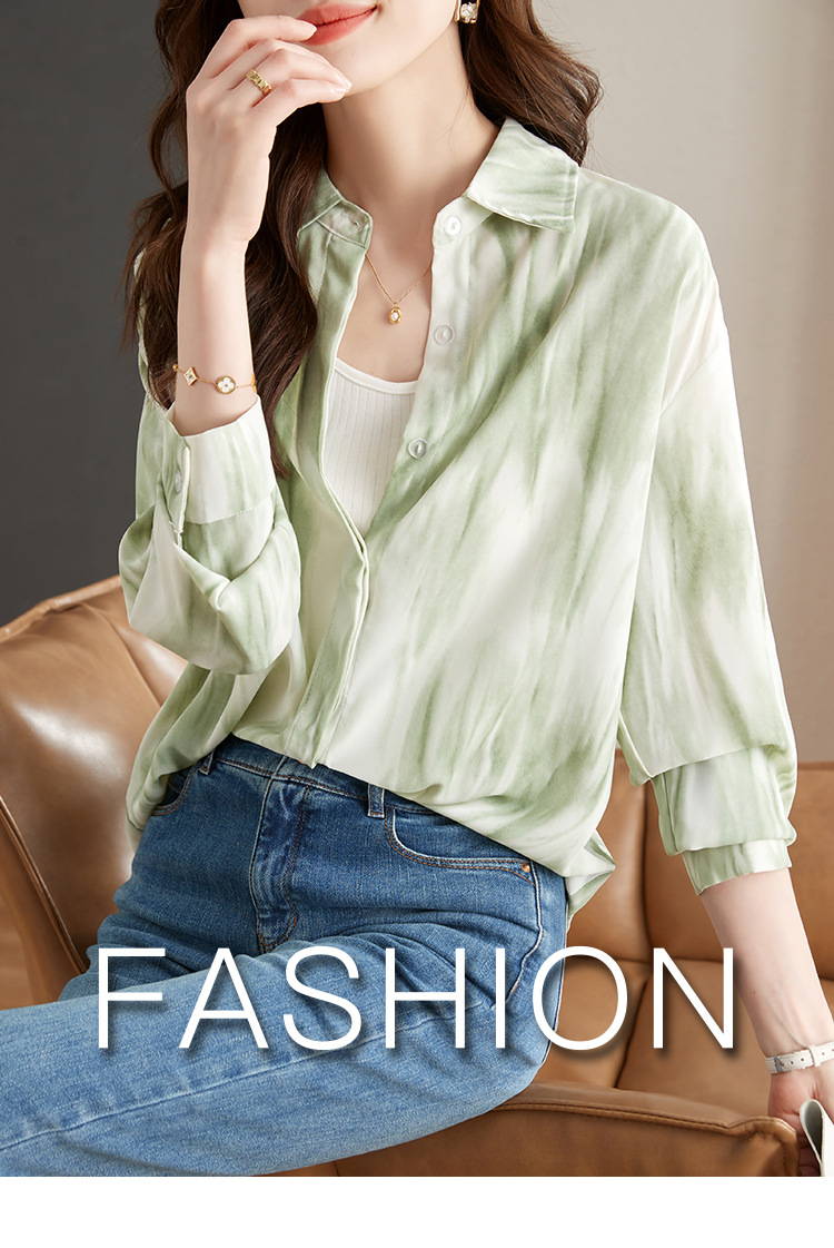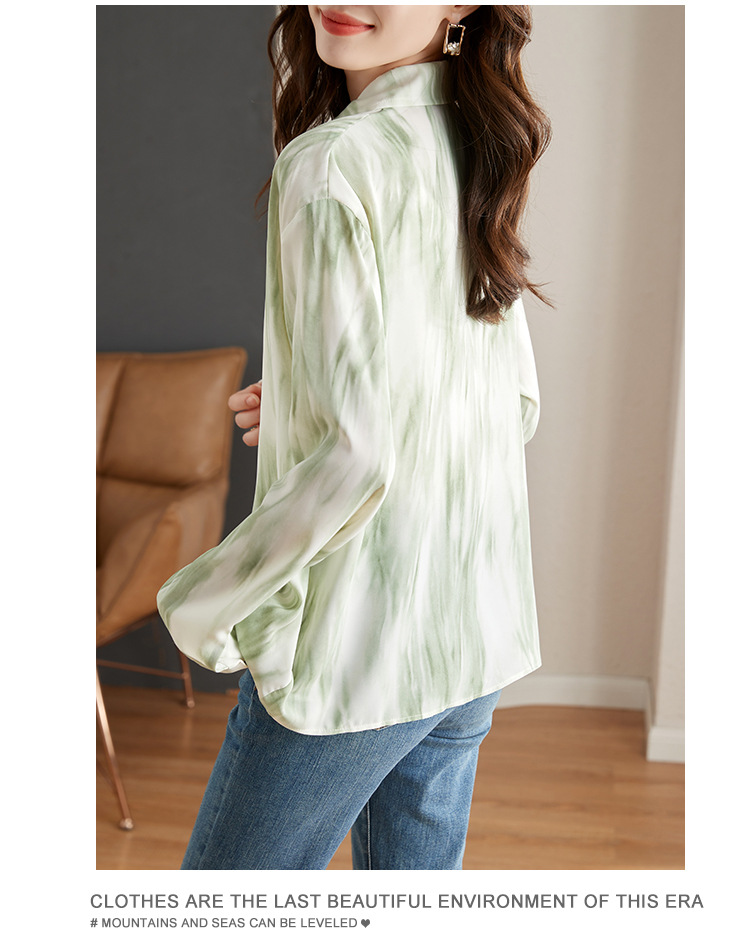 秋季新款,长袖秋款一壶春茶渐变水墨晕染染色淡雅衬衫KQL-638T8727
