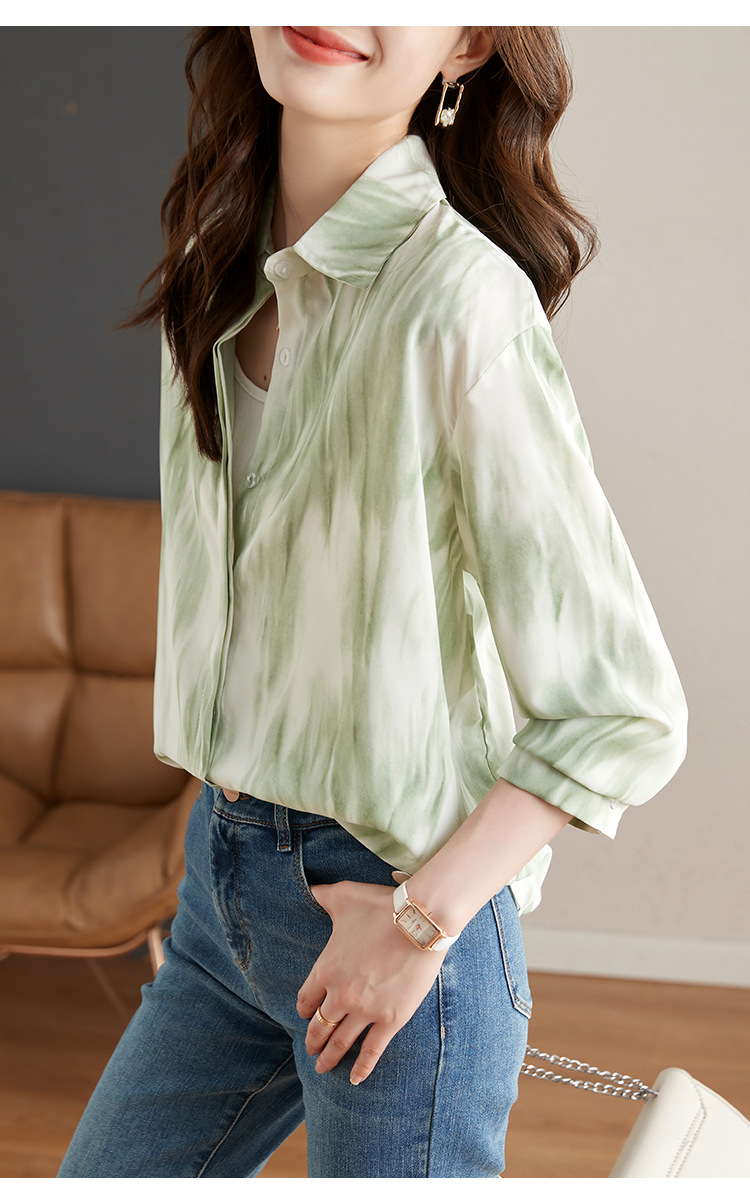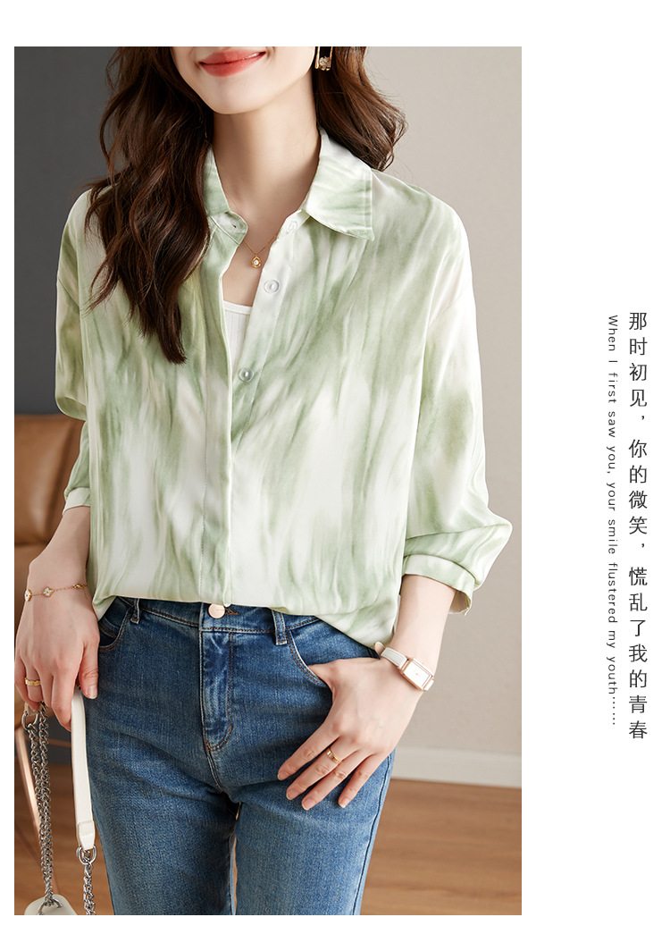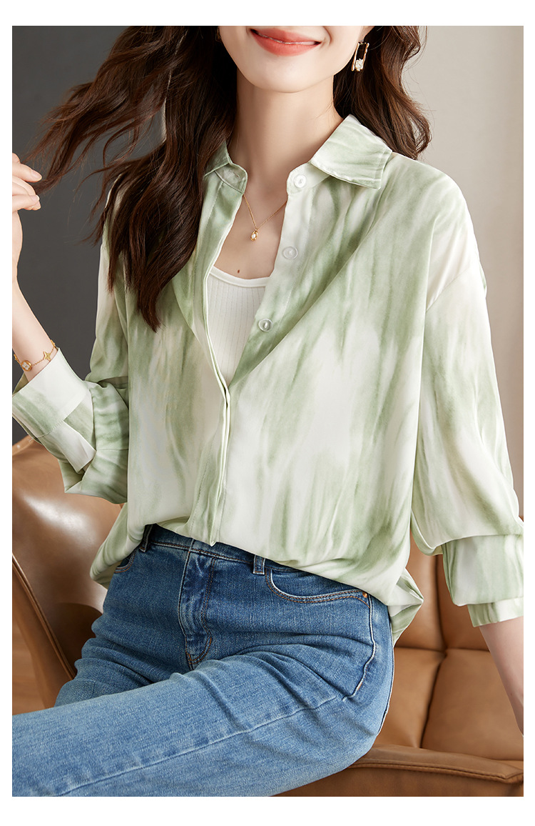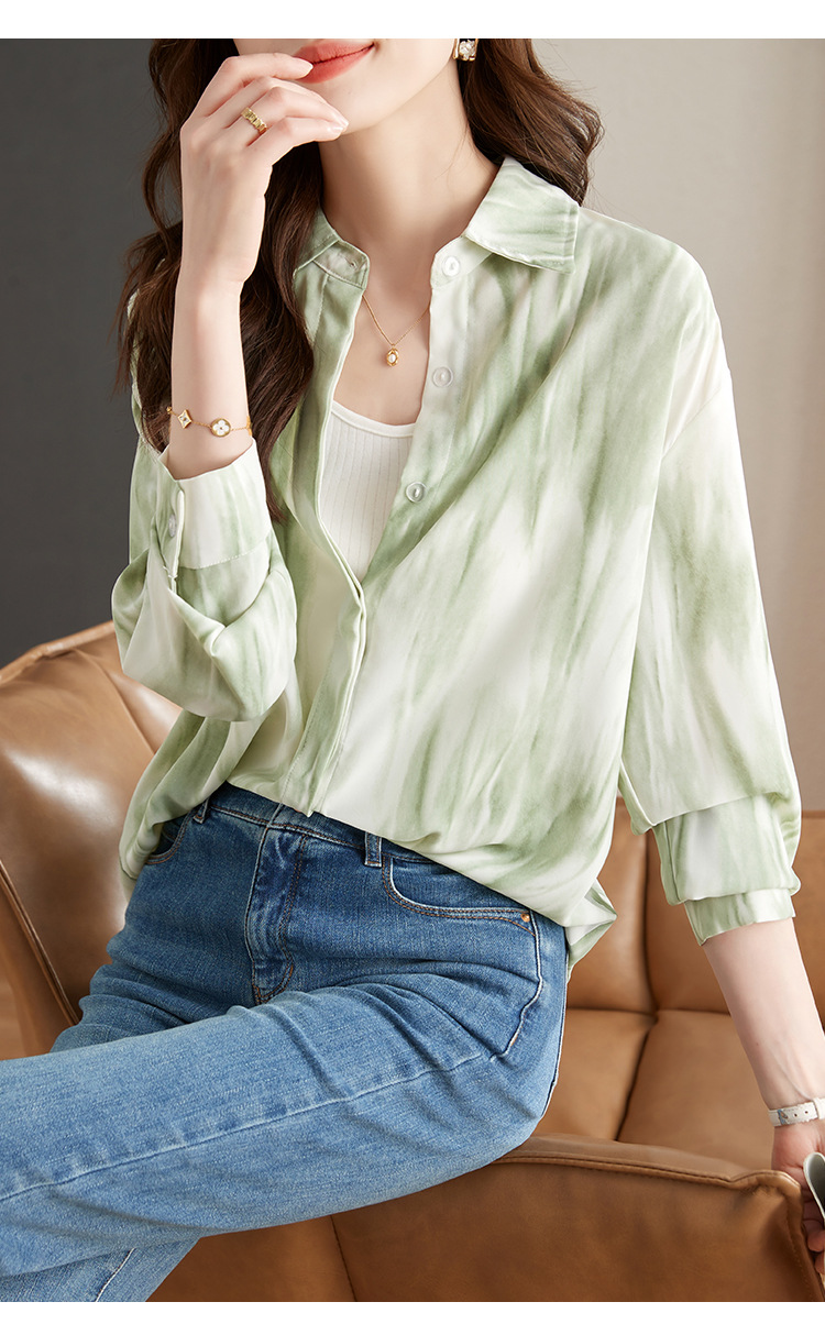 秋季新款,长袖秋款一壶春茶渐变水墨晕染染色淡雅衬衫KQL-638T8727