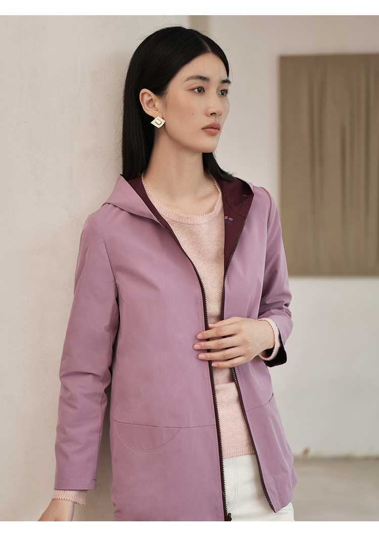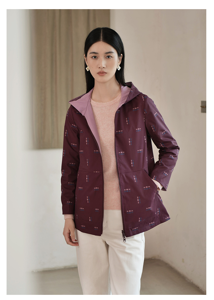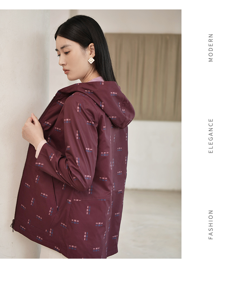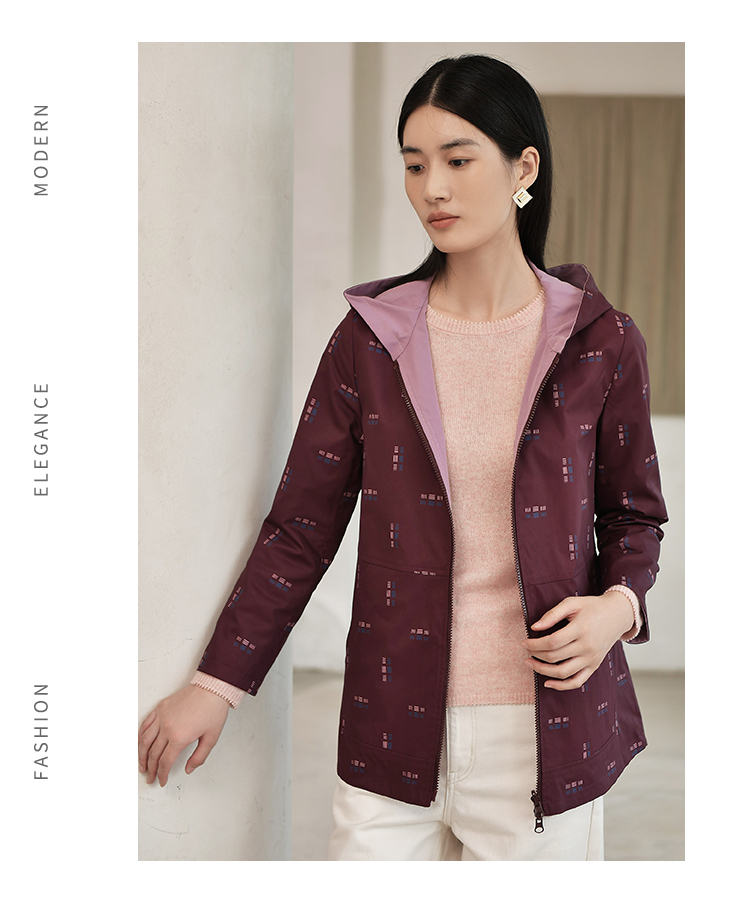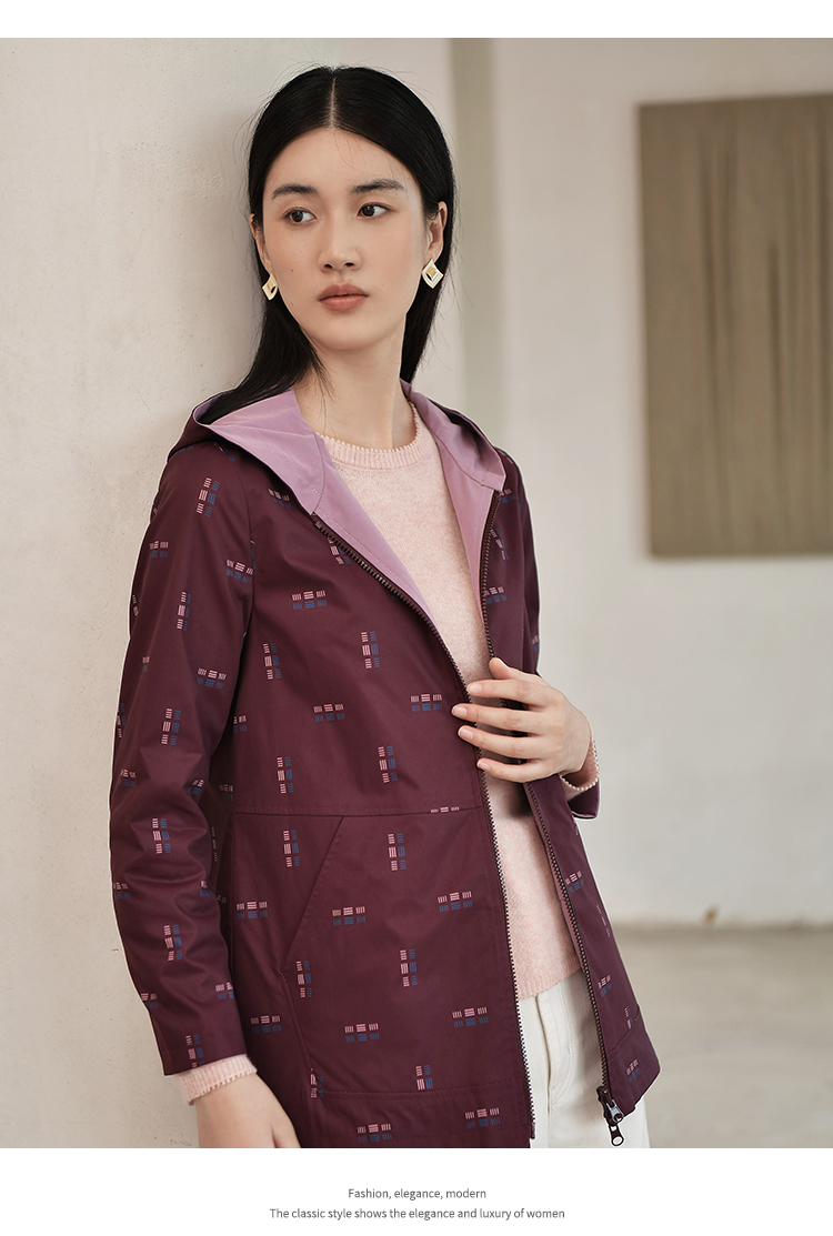 佐尔美2022秋季新款 双面穿气质几何图形图案中长风衣女E23FZ17